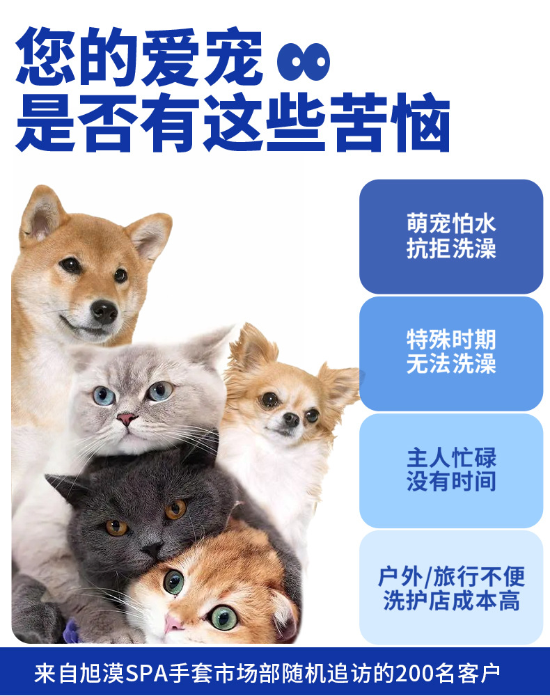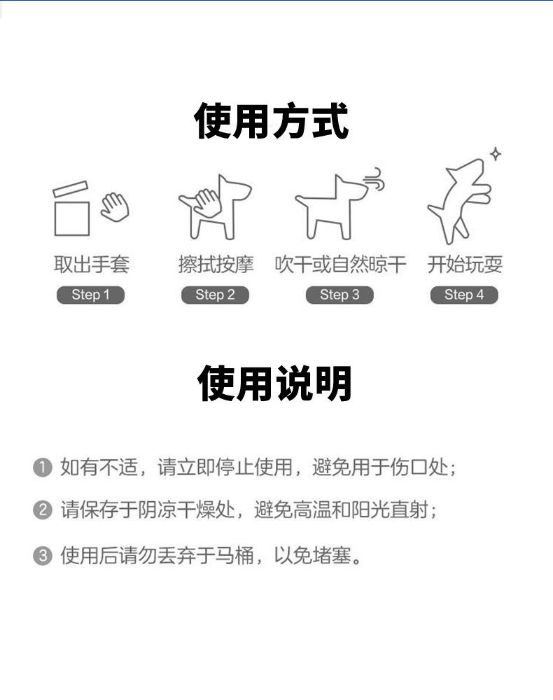 Xumo 애완 동물 일회용 장갑 일회용 목욕 방지 청소 장갑 물티슈 고양이와 개 용품 인기 판매 모델스토어 가기