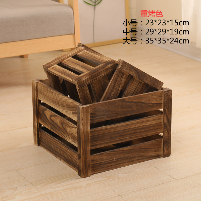 나무 상자 빈티지 중공 나무 상자 저장 상자 오래된 나무 상자 사각형 나무 바구니 과일 저장 바구니스토어 가기