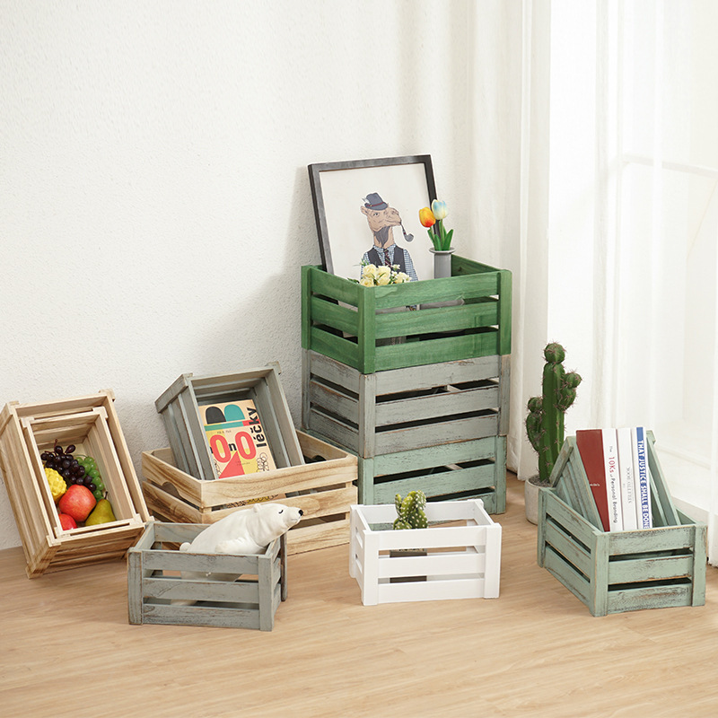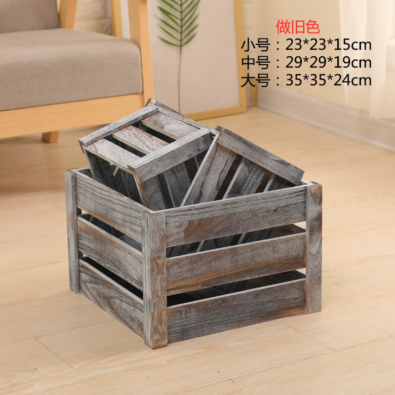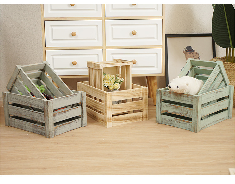 나무 상자 빈티지 중공 나무 상자 저장 상자 오래된 나무 상자 사각형 나무 바구니 과일 저장 바구니