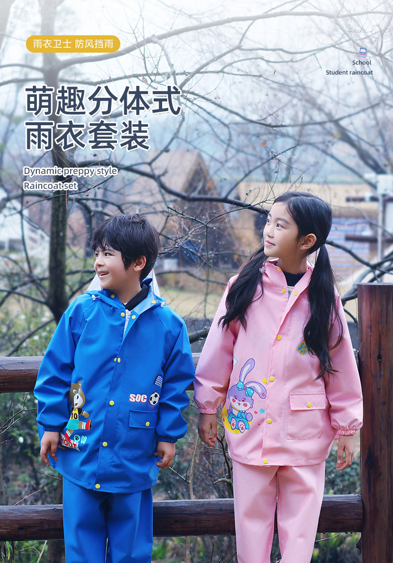 초등학생을위한 어린이 비옷 레인 팬츠 세트 소년 소녀 전신 방수 특별 분할 판초
