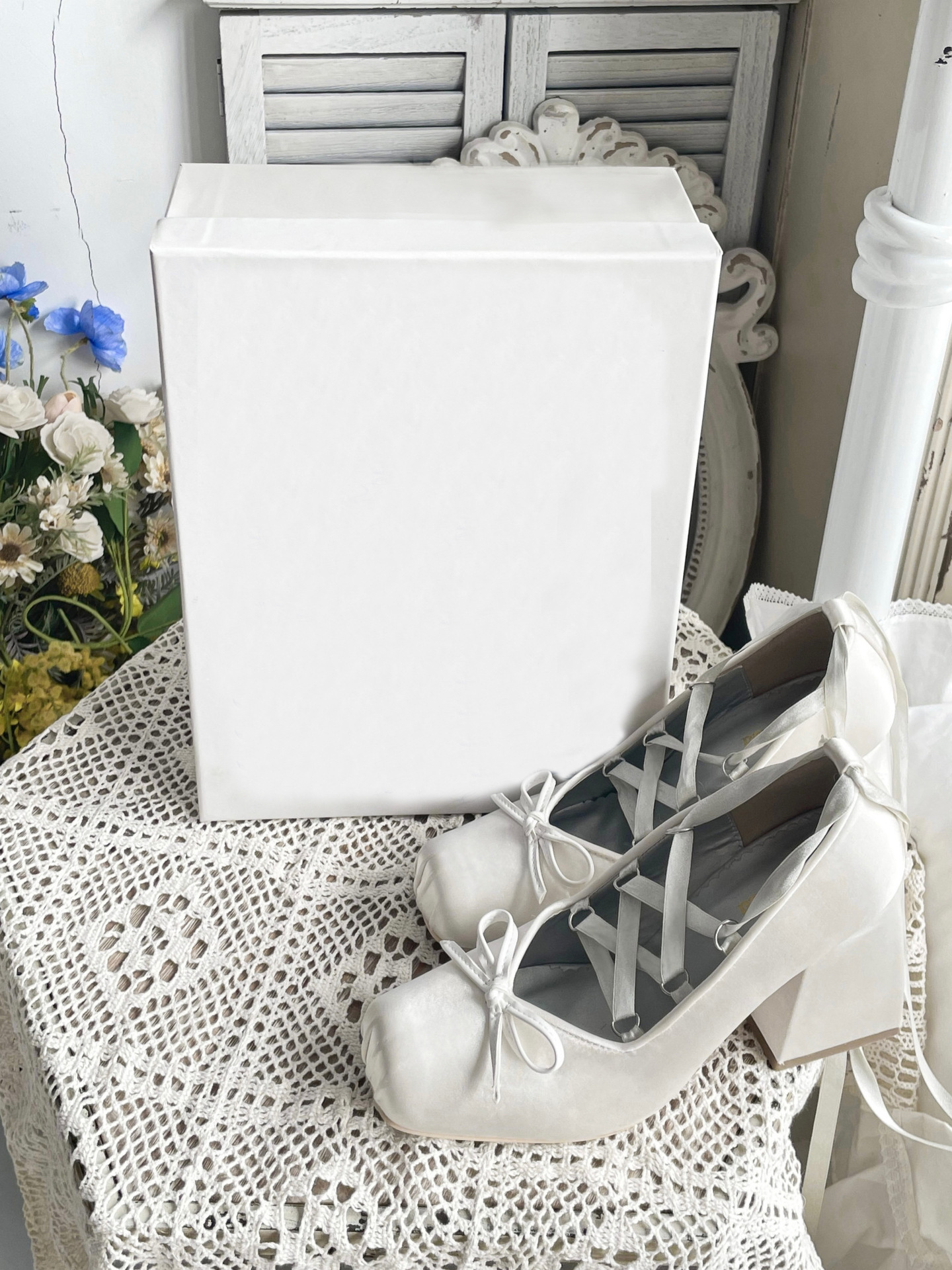 스팟 발레 스타일 패셔너블한 하이힐, 크로스 스트랩 메리제인 프렌치 새틴 리본 로리타