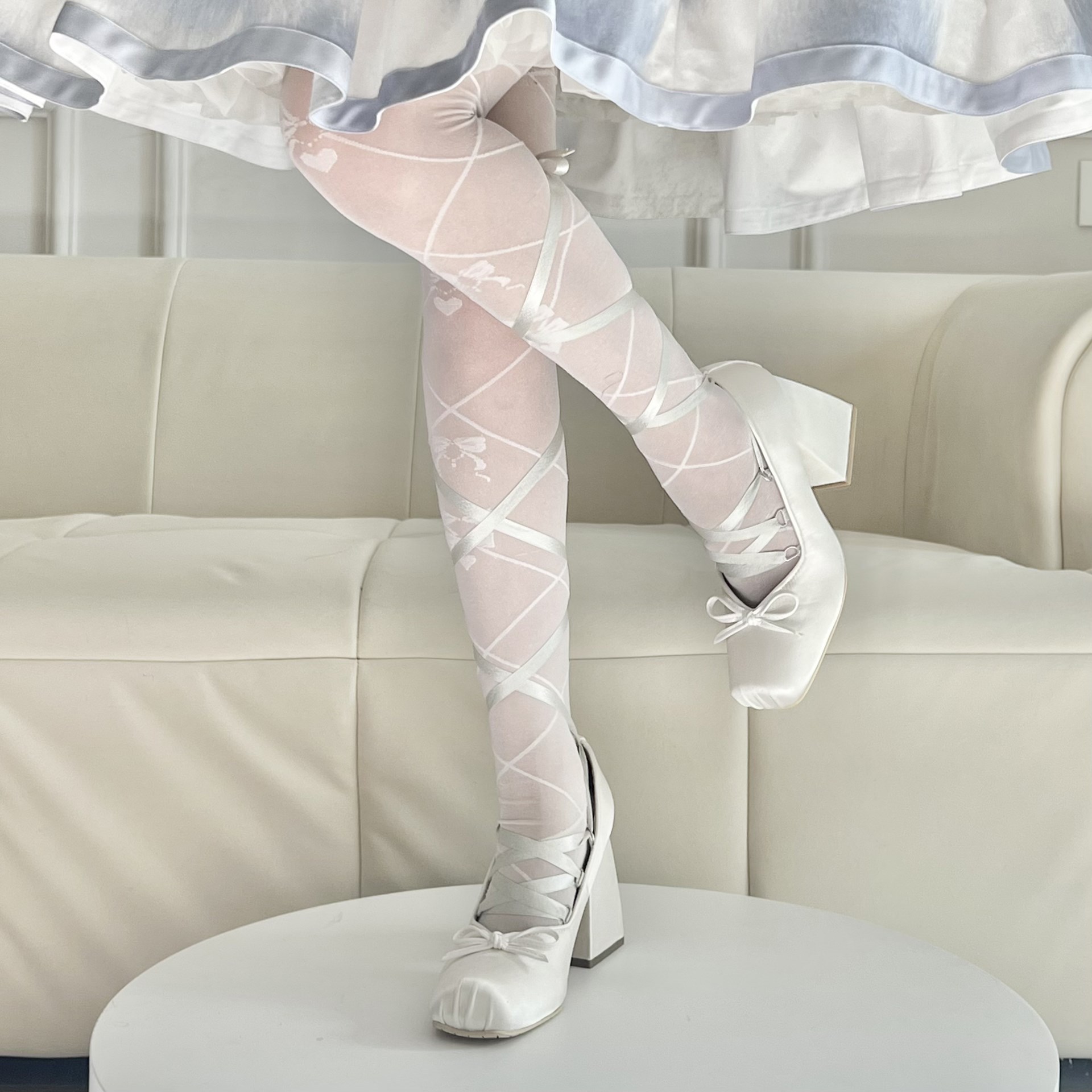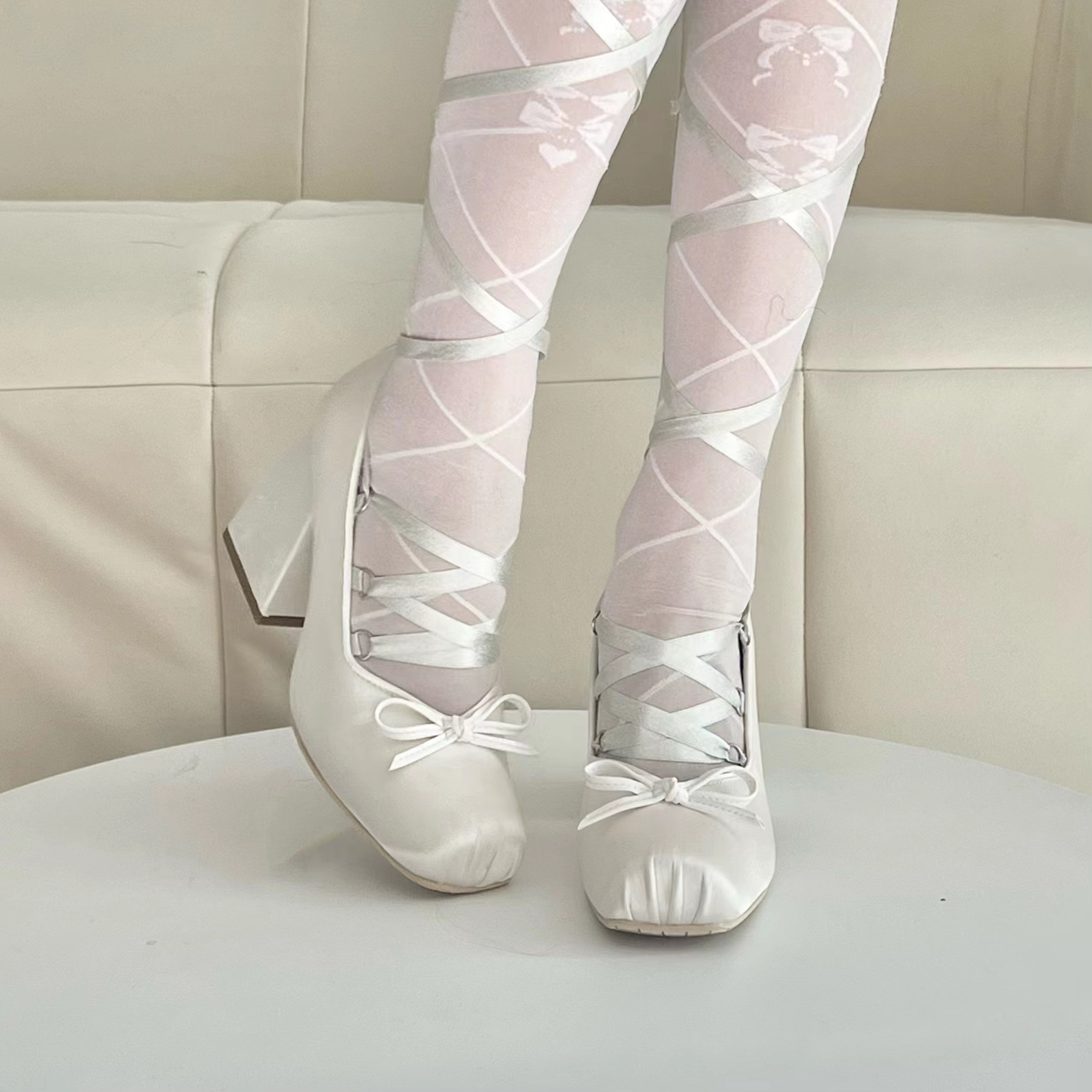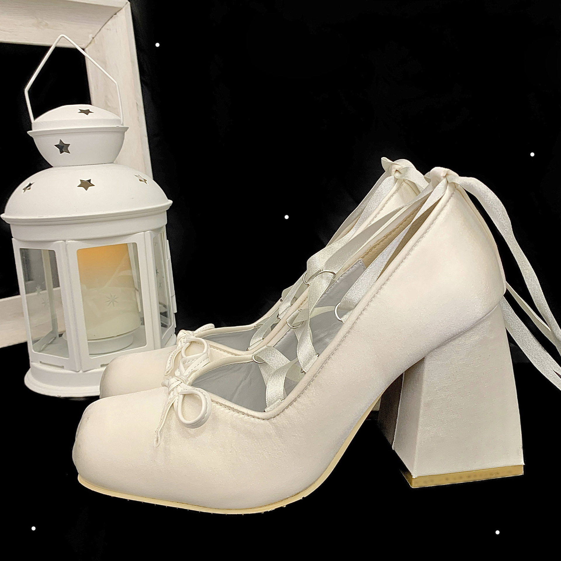 스팟 발레 스타일 패셔너블한 하이힐, 크로스 스트랩 메리제인 프렌치 새틴 리본 로리타스토어 가기