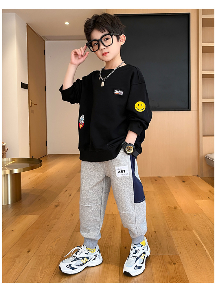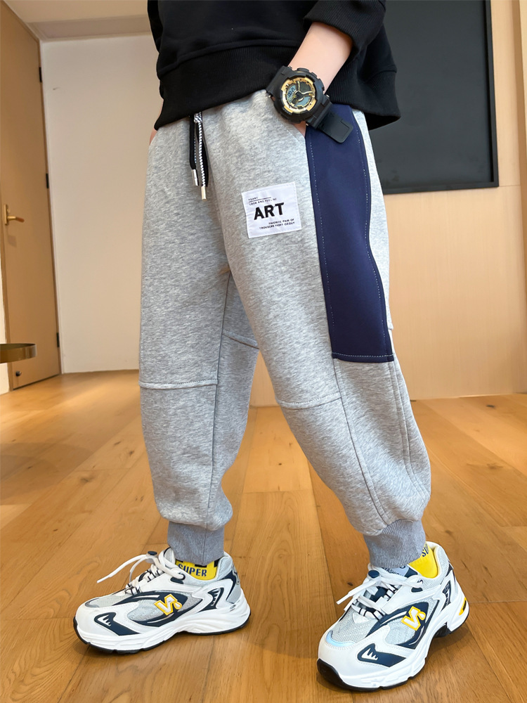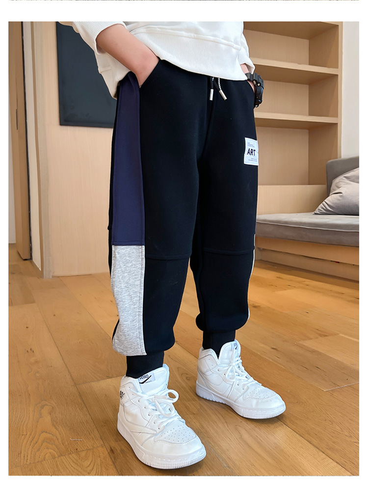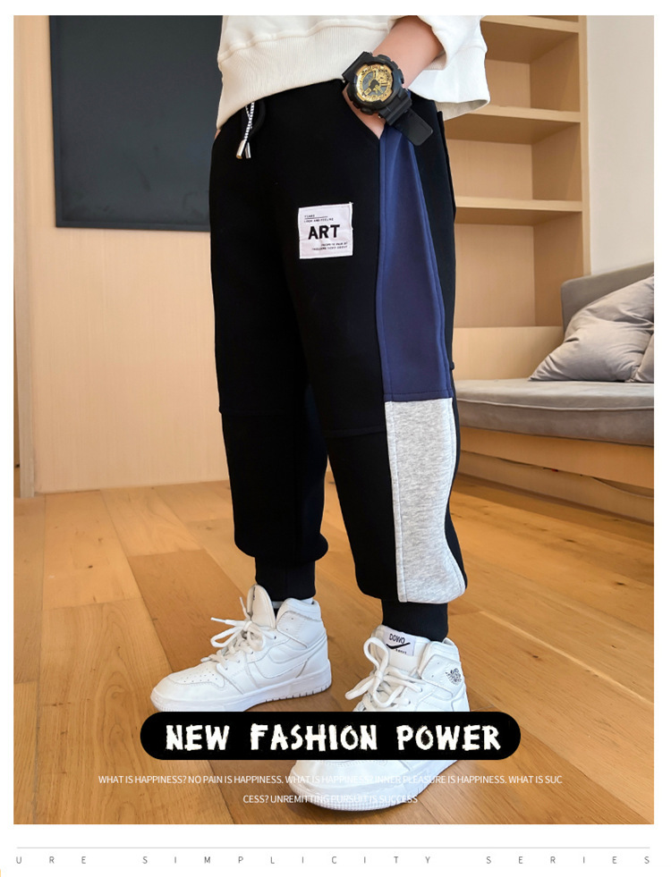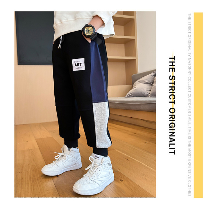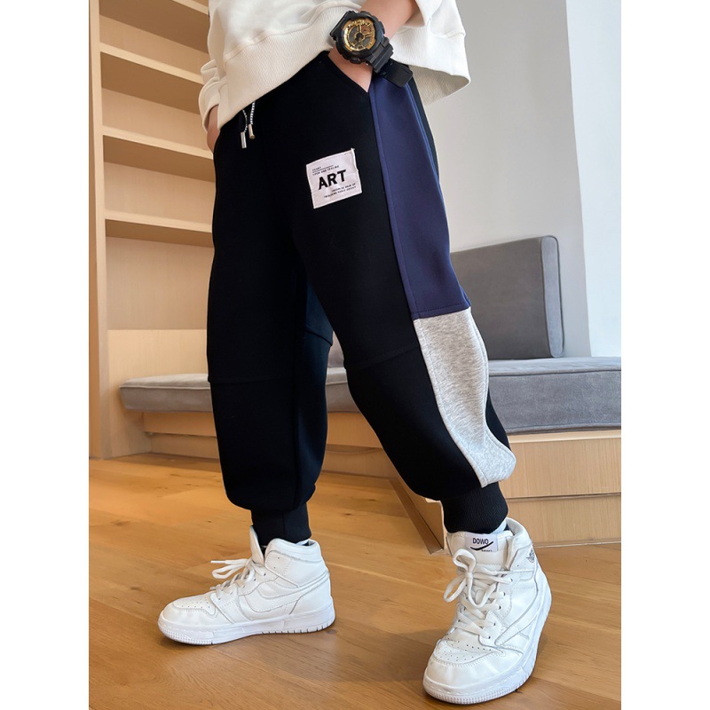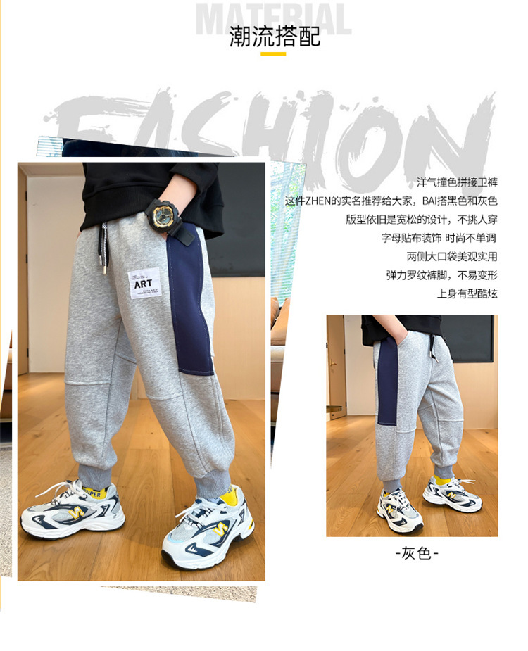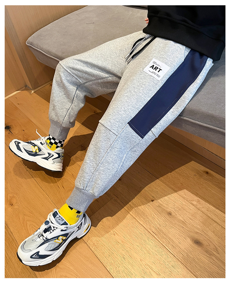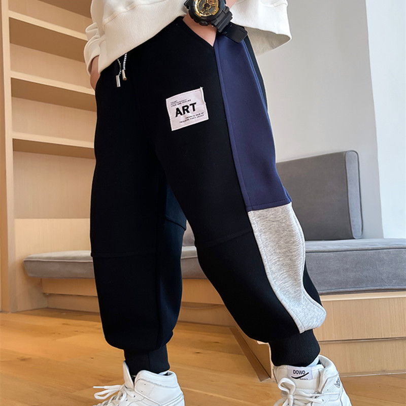 봄과 가을 소년 캐주얼 바지 2023 새로운 한국 스타일 미드 빅 키즈 컬러 매칭 패션 모든 매치 바지 웨스턴 스타일 스포츠 바지스토어 가기