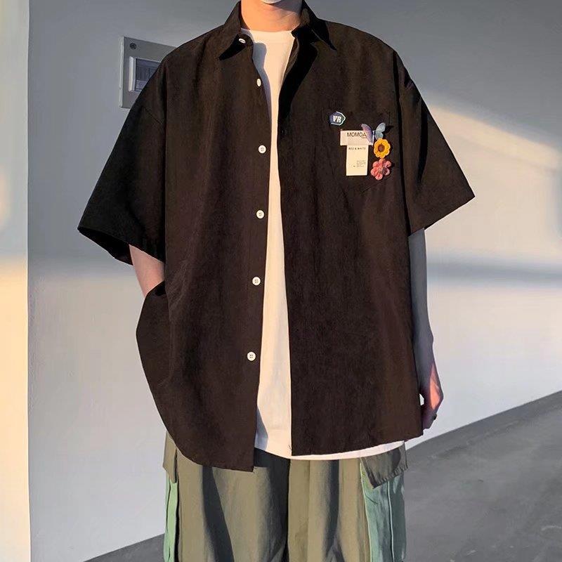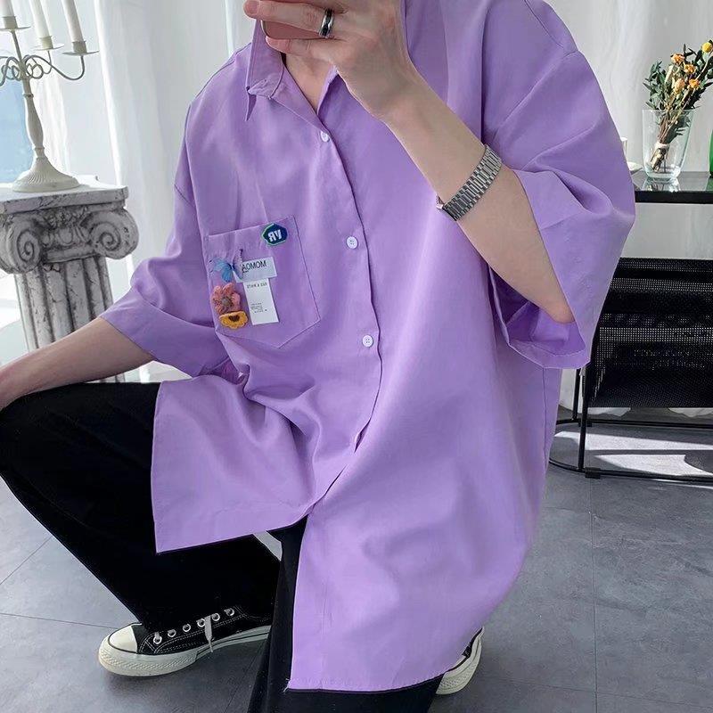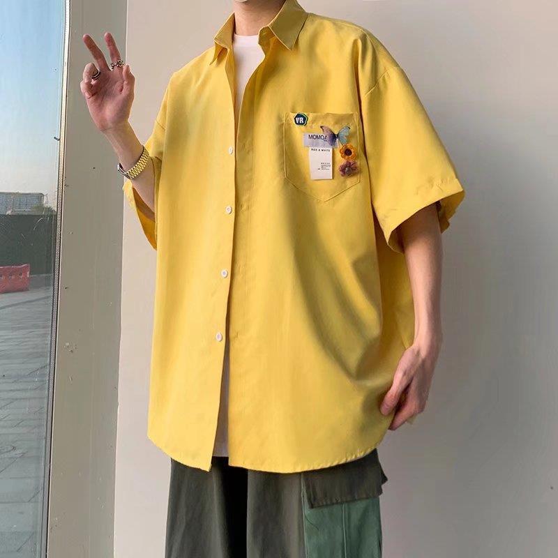 반팔 jk 셔츠 한국 스타일의 남성과 여성의 빈티지 유행 느슨한 슈퍼 핫 반 소매 셔츠 학생 단색 탑 셔츠스토어 가기