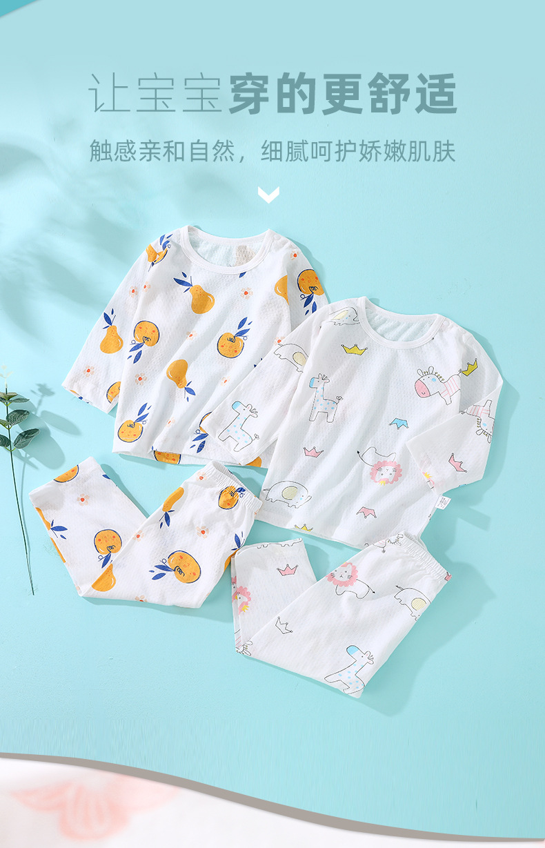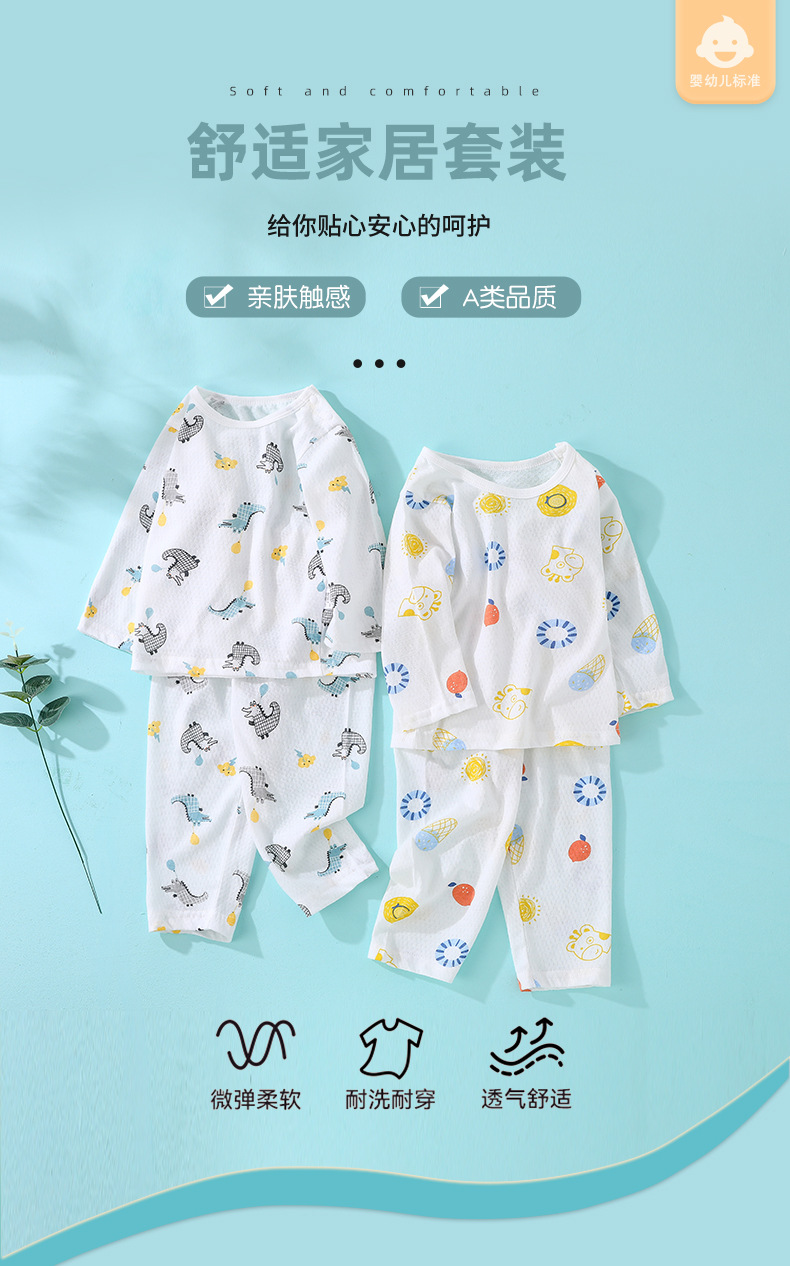 아기 가정 에어컨 옷 순면 얇은 여름 아기 긴 소매 어린이 잠옷 세트 소년과 소녀 봄과 여름스토어 가기