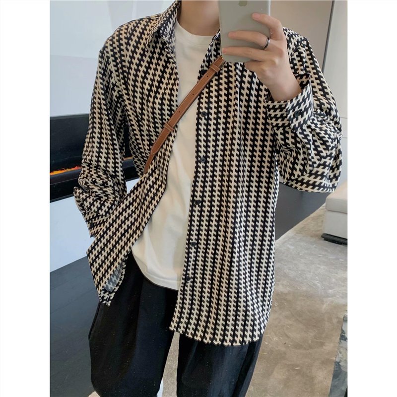 Houndstooth 셔츠 가을 한국 틈새 디자인 격자 무늬 고급 긴팔 셔츠 남자의 유행 빛 성숙한 Ruffian 잘 생긴 탑스토어 가기