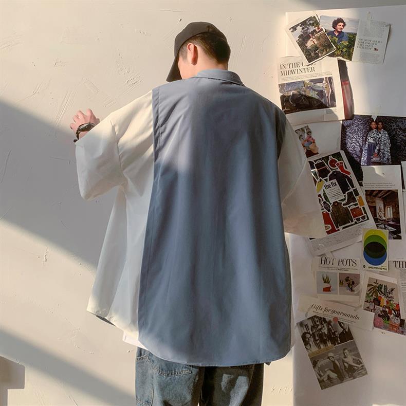 여름 남자 반팔 반팔 셔츠 한국식 트렌디 인 ruoshuai 캐주얼 올 매치 간단한 홍콩 스타일 학생 셔츠스토어 가기