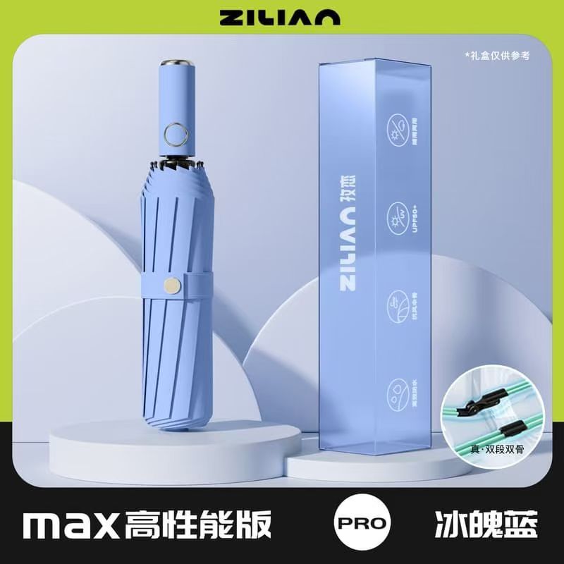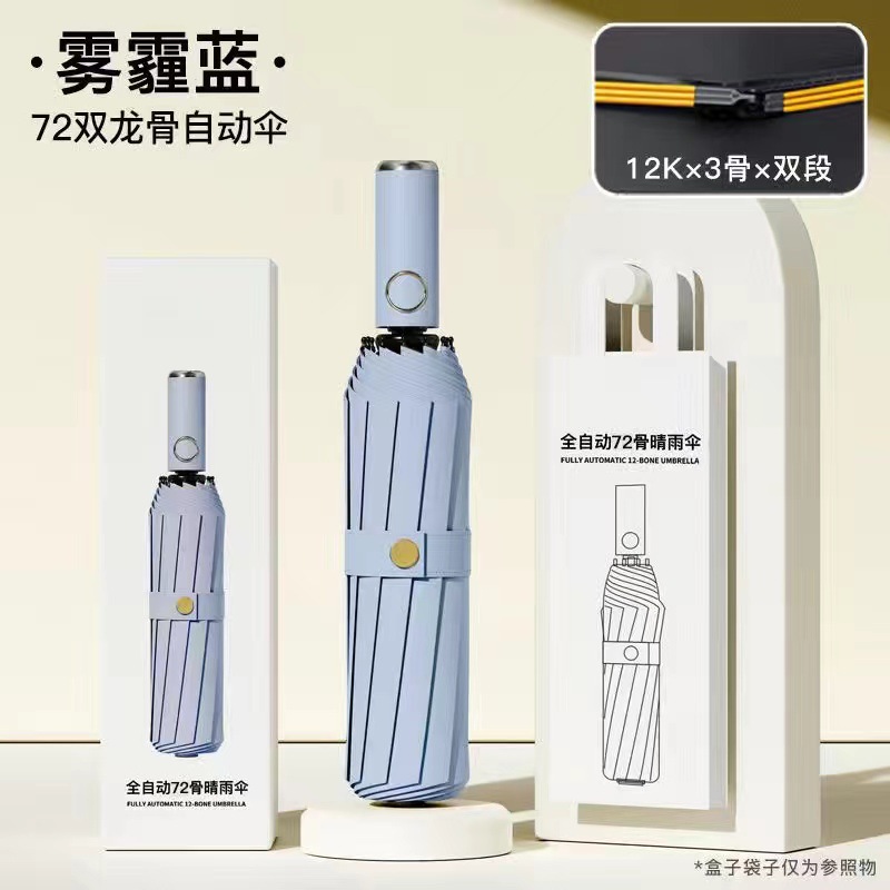 • [자동] 8 뼈 검은 고무 우산 안개 블루