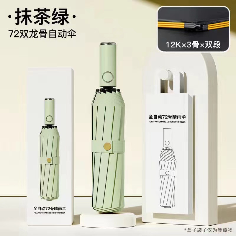 • [자동] 8 뼈 검은 고무 우산 어두운 옥 녹색