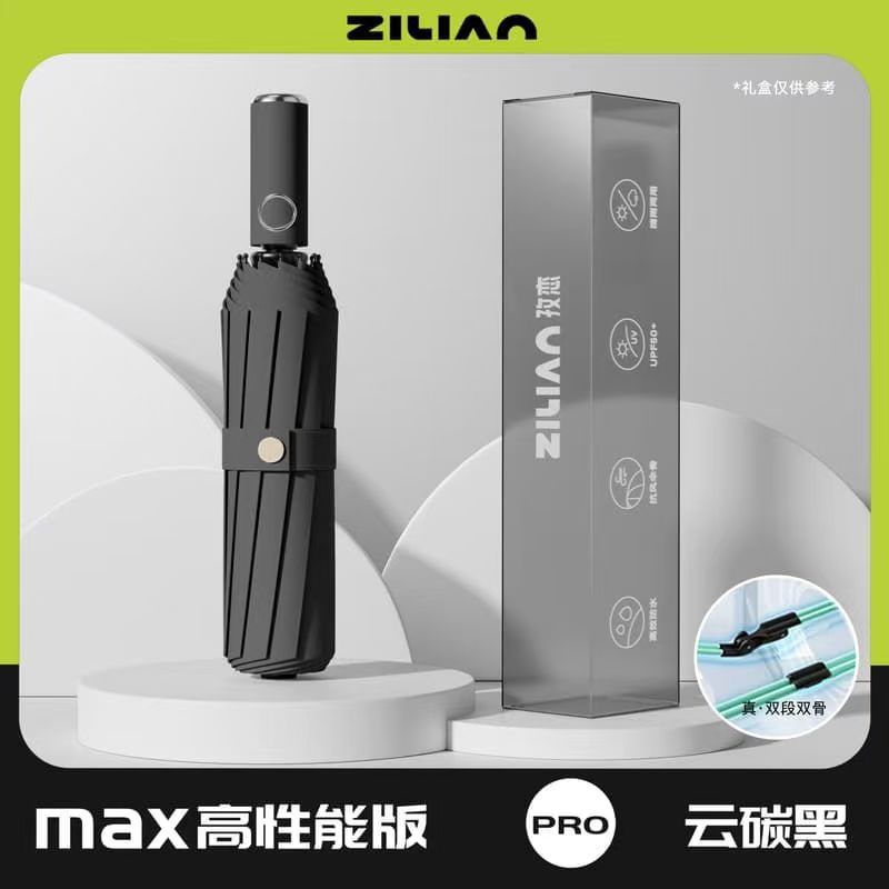 • [자동] 8 뼈 검은 고무 우산 한여름 분말