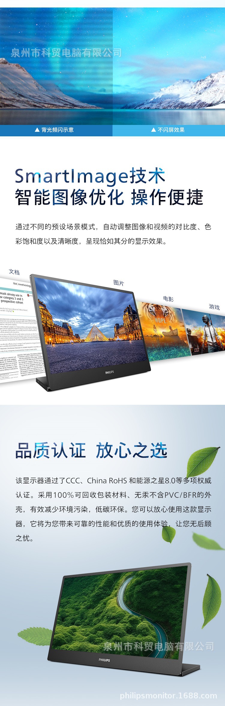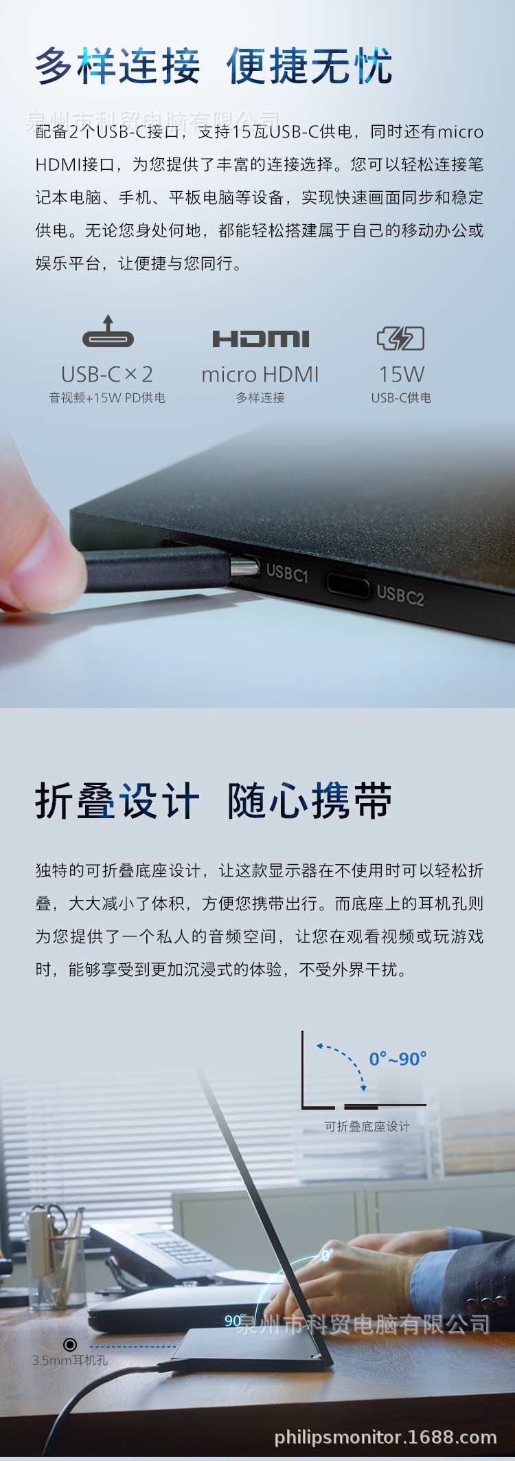 필립스 15.6인치 휴대용 모니터 5mm 타입-C 눈 보호 HDR 100% off 스택형 벽걸이형 16B1P3320스토어 가기