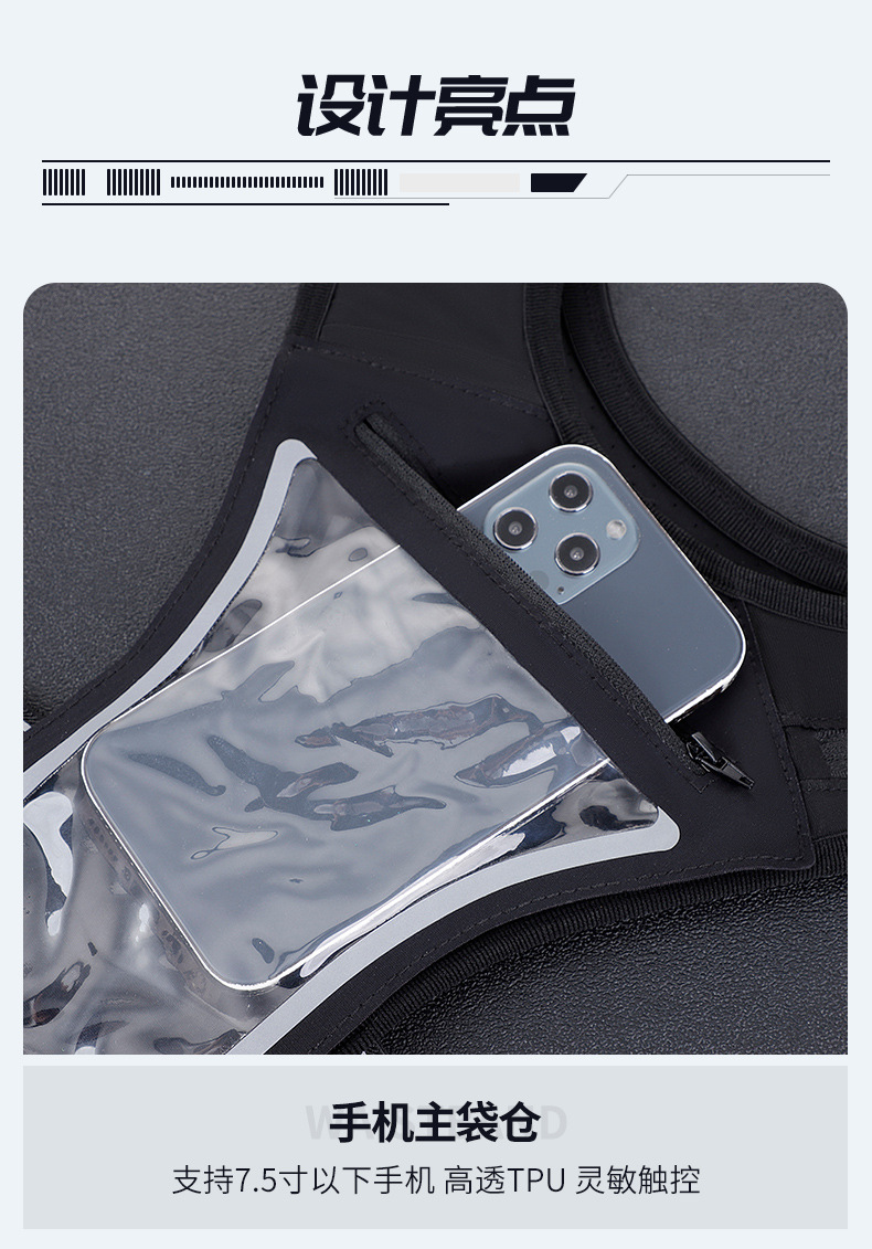 맞춤형 러닝 조끼, 휴대폰 가방, 다이빙 소재, 통기성 웨어러블 조끼, 스포츠 가방, 창, 터치 스크린, 7inch 범용