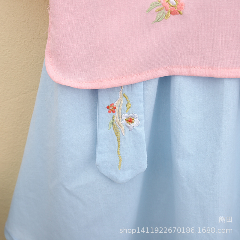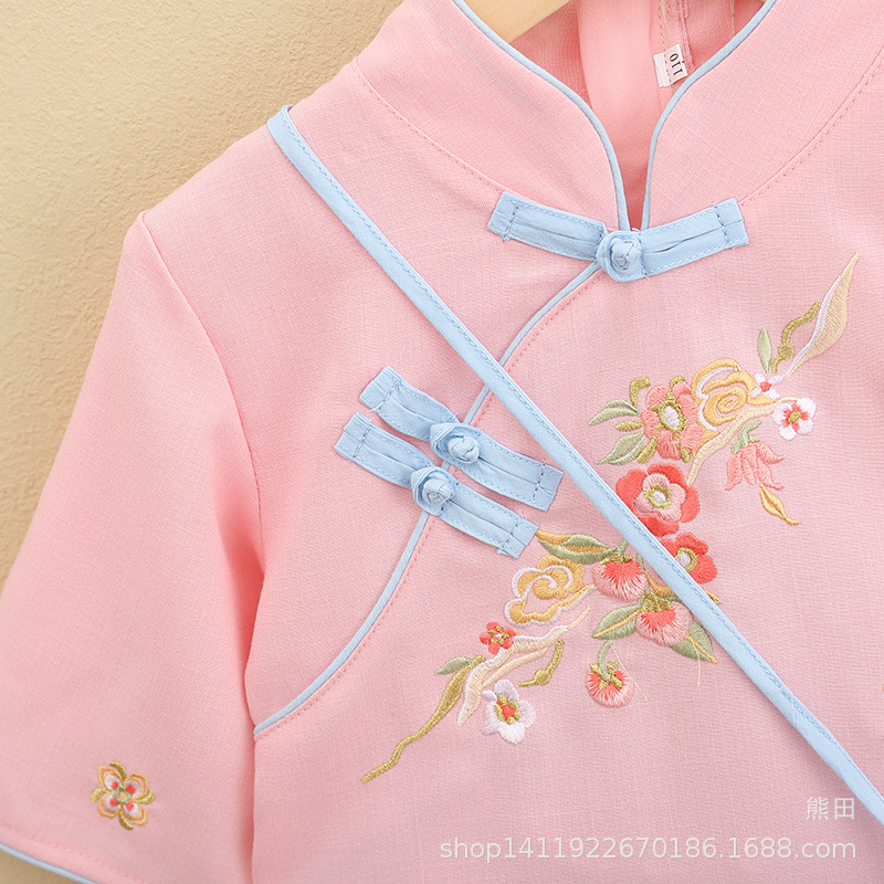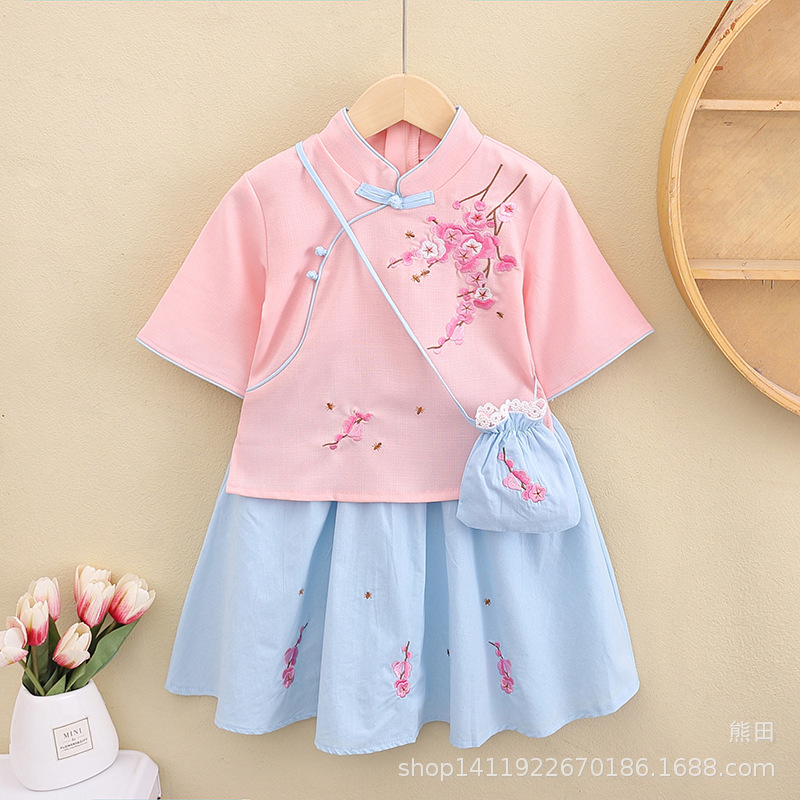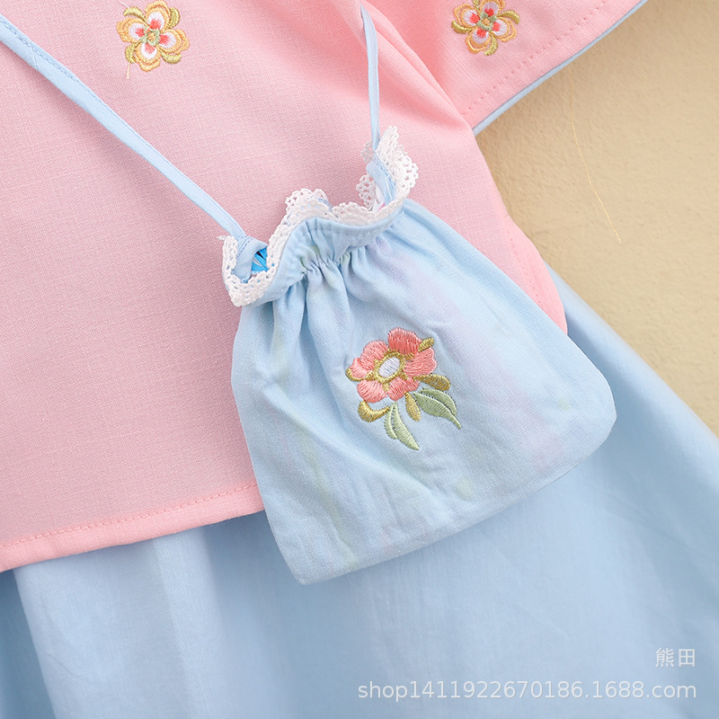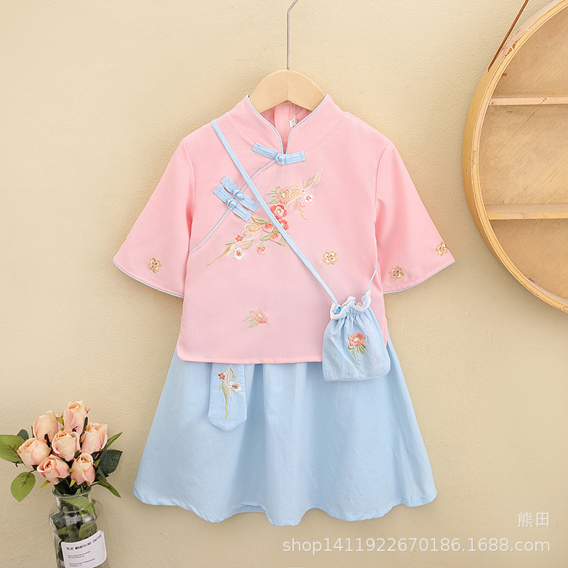 어린이 Hanfu 여름 소녀 당 세트 치파오 개선 Hanfu 스커트 작은 소녀의 국가 스타일 어린이 의류 민족 스타일 고대 원피스