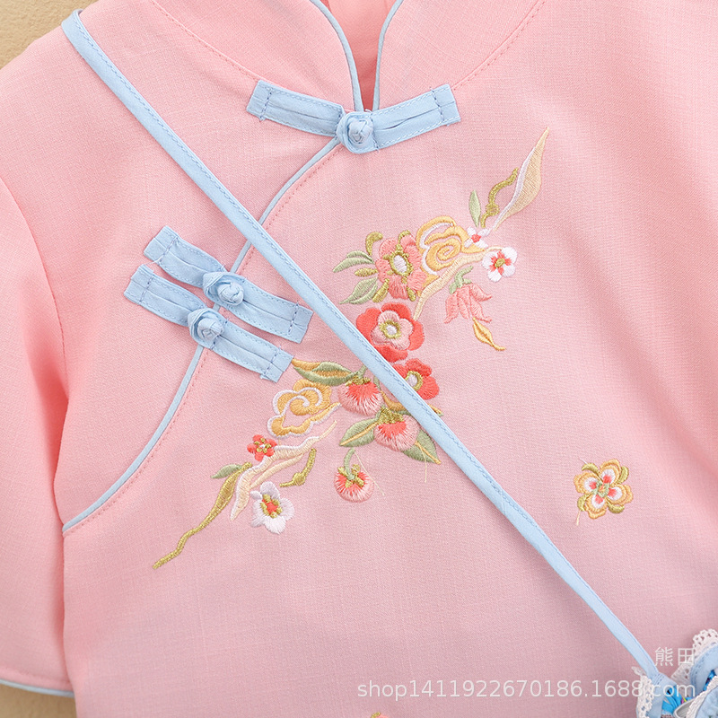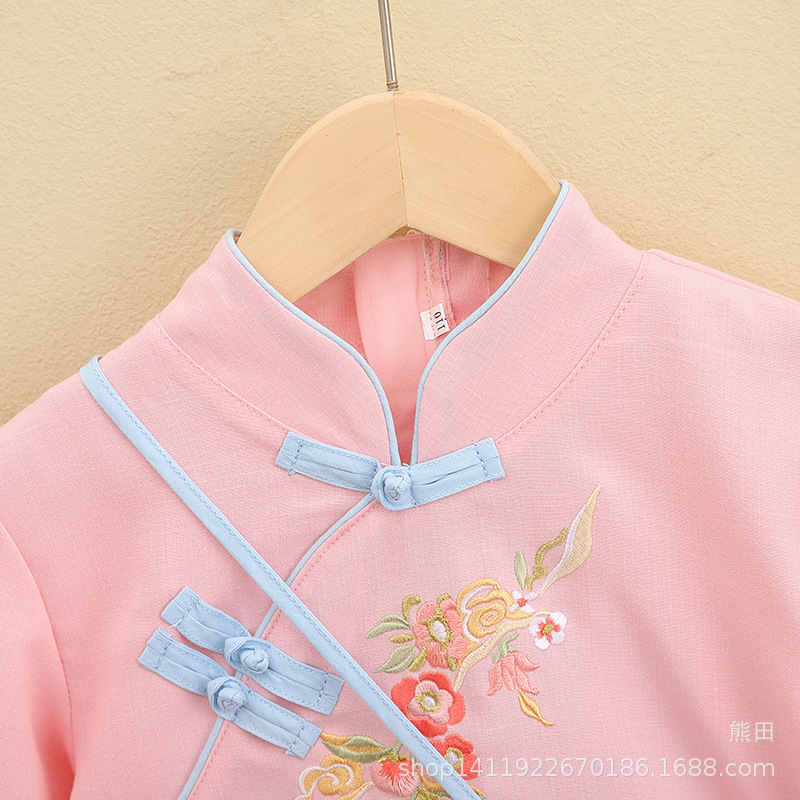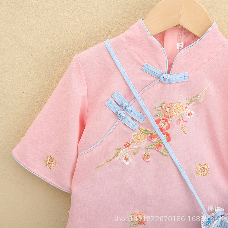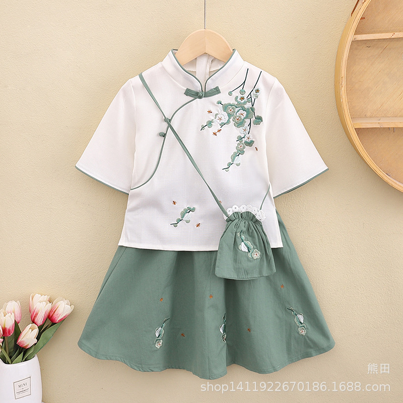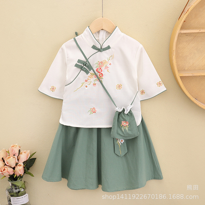 어린이 Hanfu 여름 소녀 당 세트 치파오 개선 Hanfu 스커트 작은 소녀의 국가 스타일 어린이 의류 민족 스타일 고대 원피스