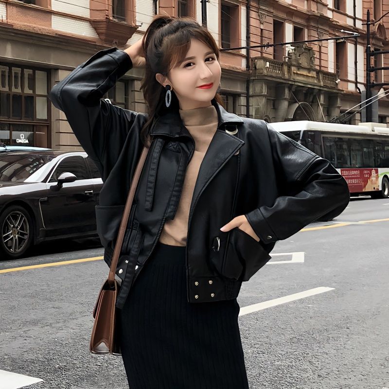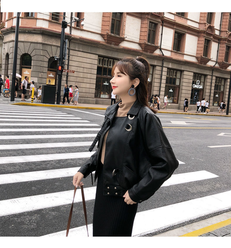 짧은 가죽 자켓 여성 봄, 가을 2022 새로운 한국 스타일 캐주얼 블랙 가죽 자켓 루즈 인 트렌디 여성