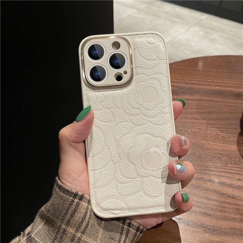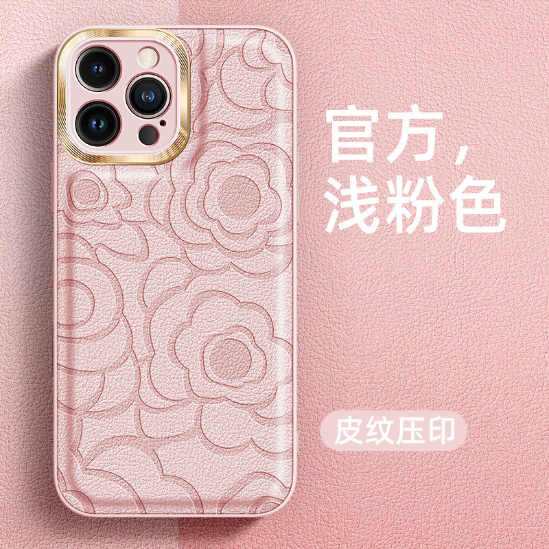 Apple 16promax 동백 꽃 무늬 휴대폰 케이스 금속 렌즈 iPhone15 일체형 14 보호 케이스에 적합스토어 가기