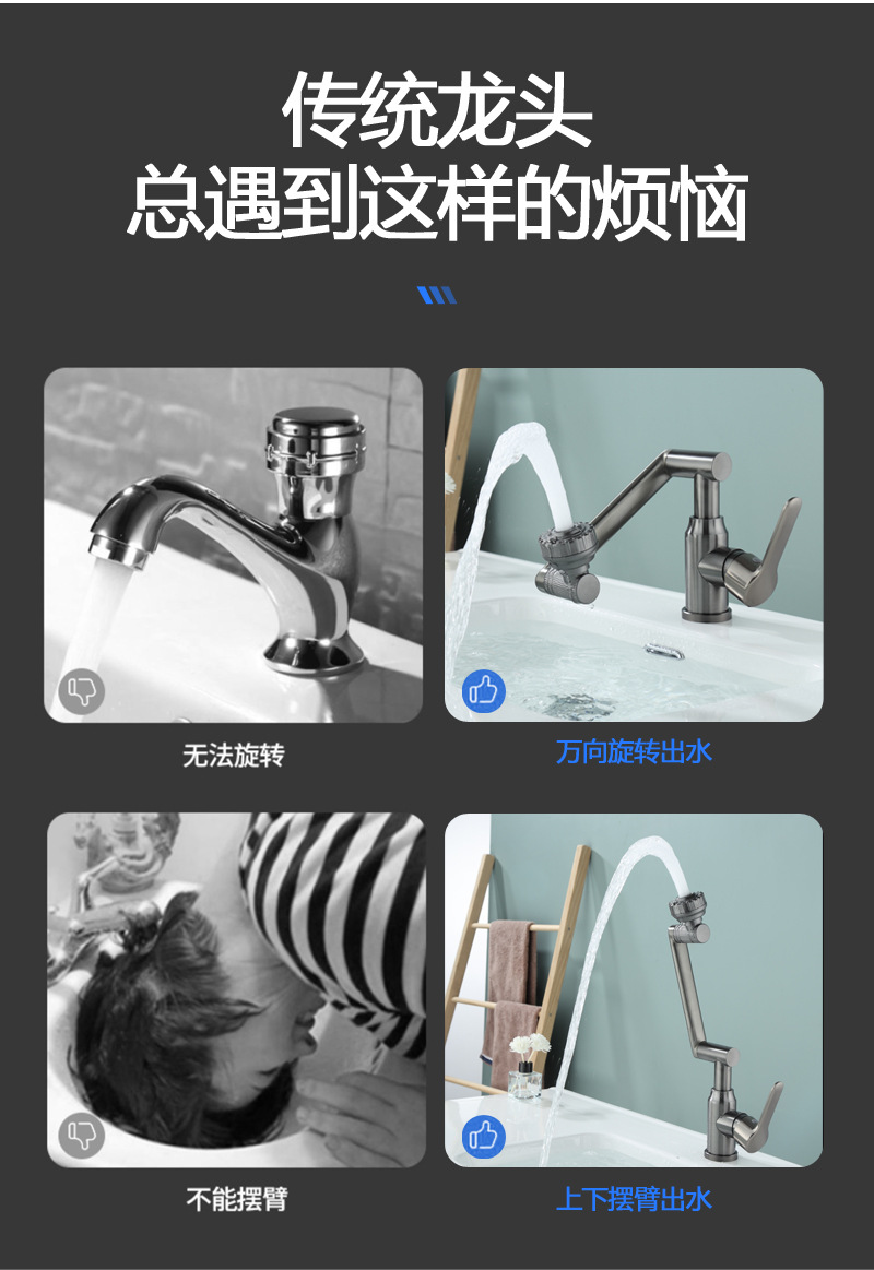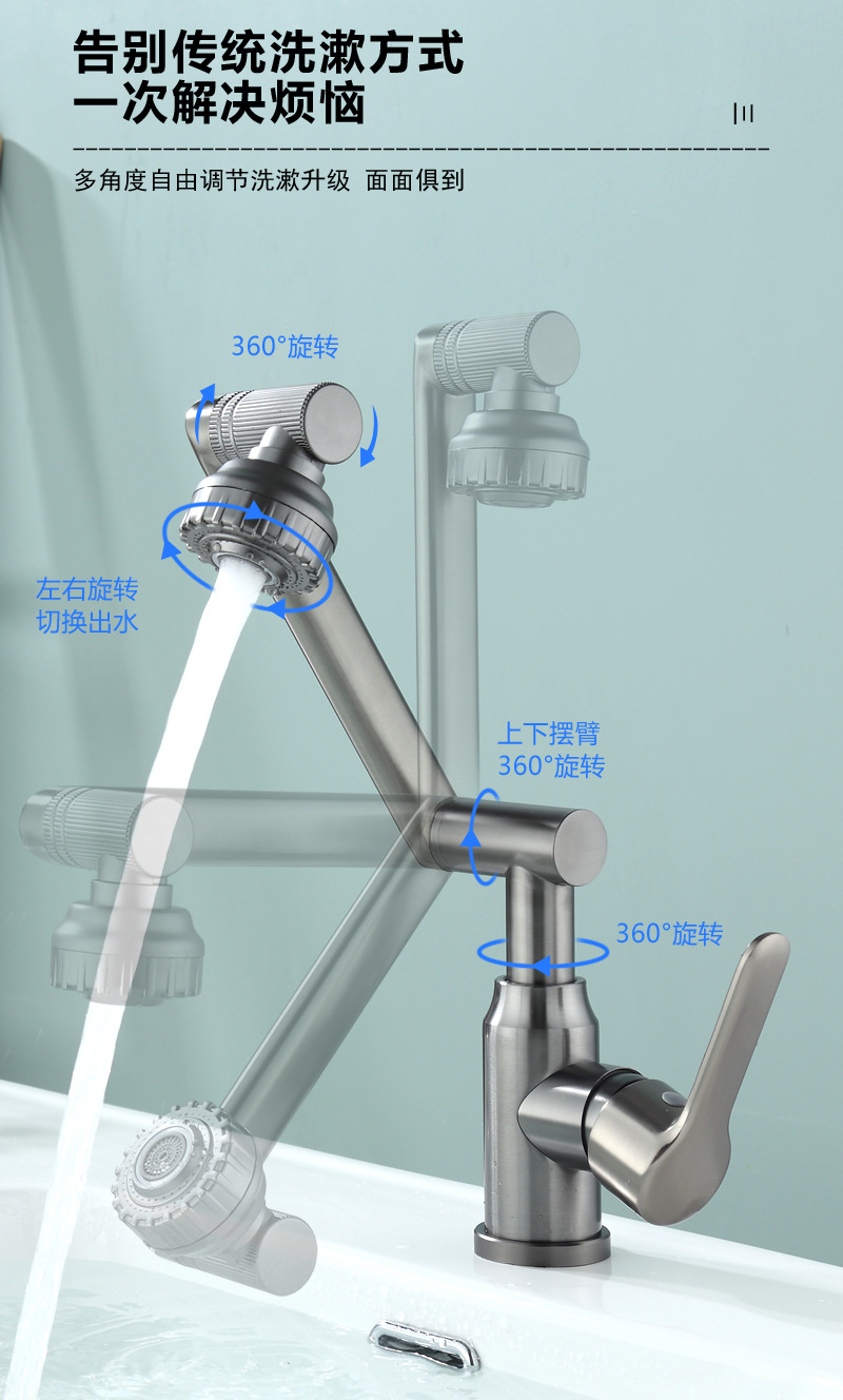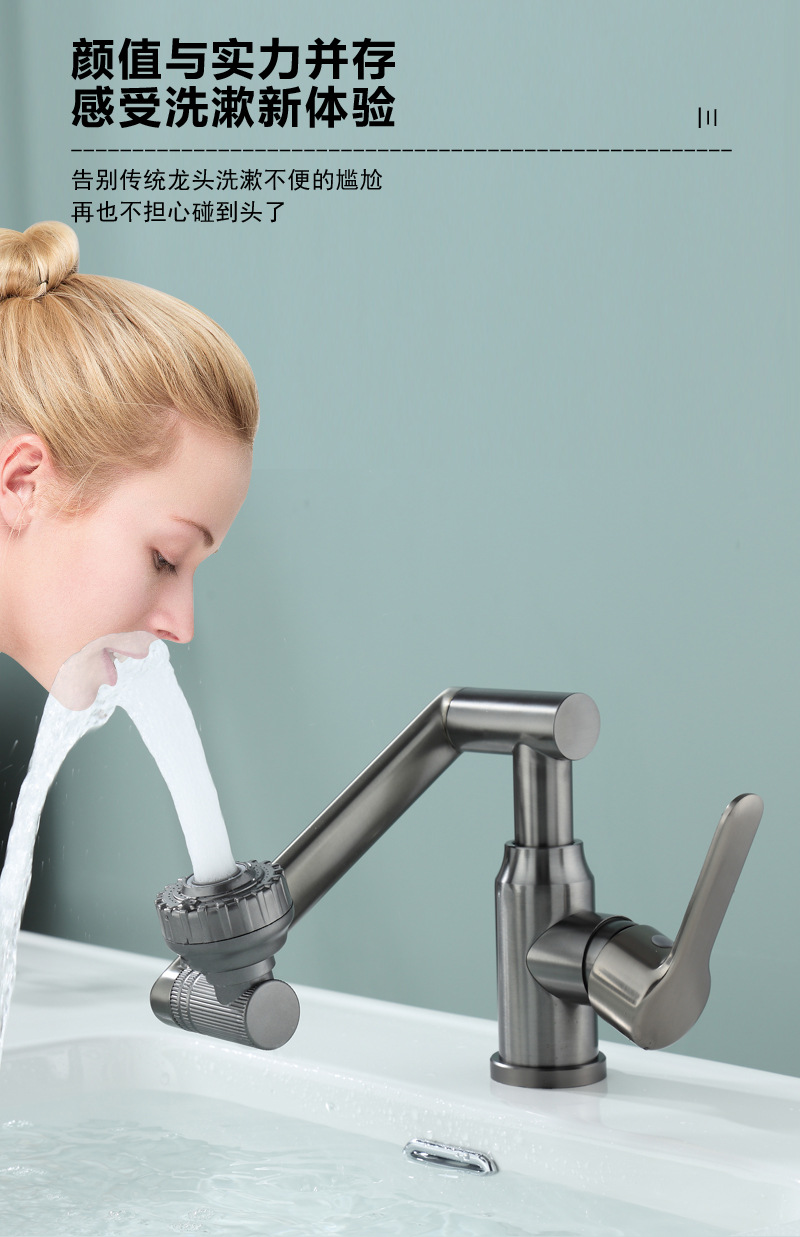 화장실 뜨겁고 차가운 수도꼭지 세면대 세면대 다기능 범용 기계 팔 럭키 캣 분지 수도꼭지