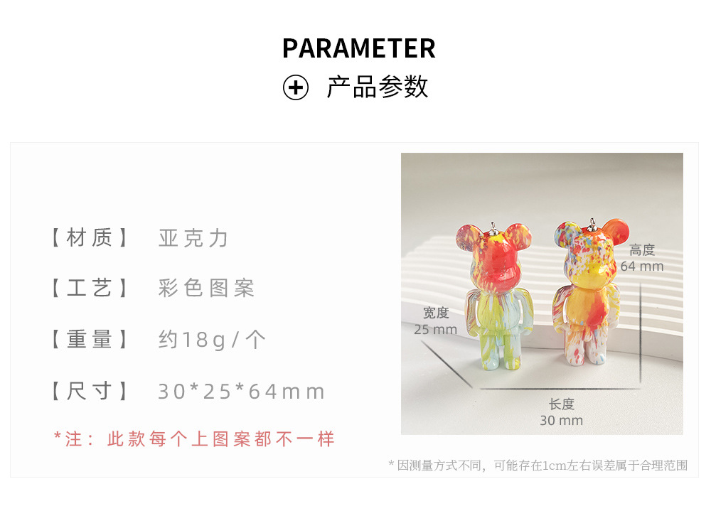 아크릴 그린 낙서 예술 폭력 곰 DIY 어린이 장난감 선물 블라인드 박스 액세서리 열쇠 고리 가방 펜던트