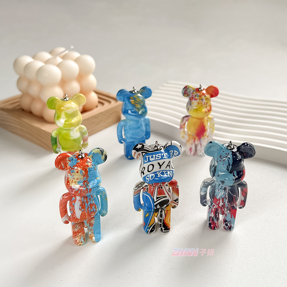 아크릴 그린 낙서 예술 폭력 곰 DIY 어린이 장난감 선물 블라인드 박스 액세서리 열쇠 고리 가방 펜던트스토어 가기