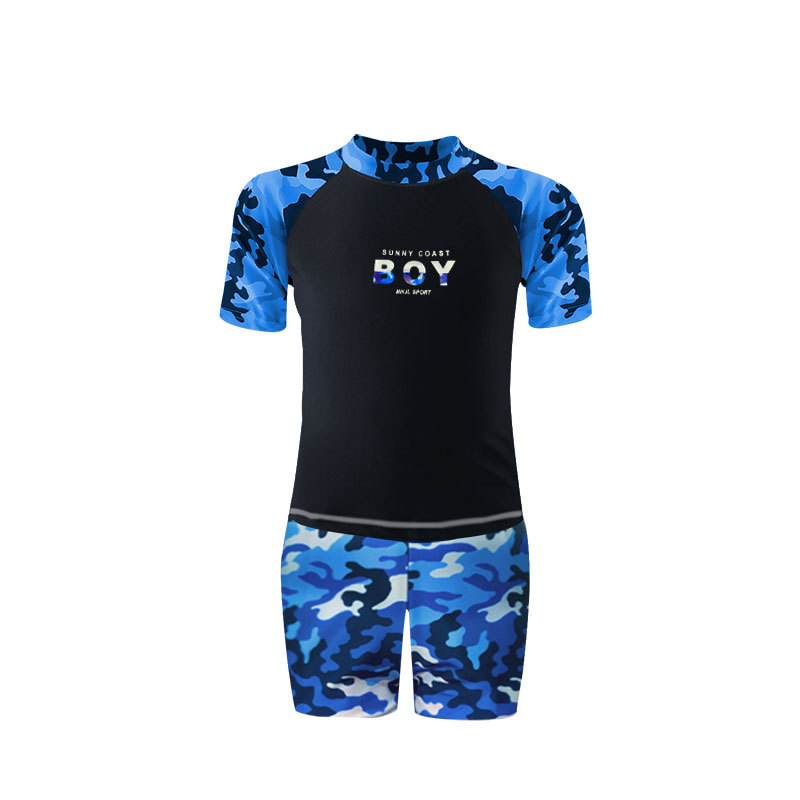 어린이 수영복 소년 중간 및 큰 어린이 위장 소년 2023 새로운 여름 분할 수영복 수영복 수영복 세트 트렁크