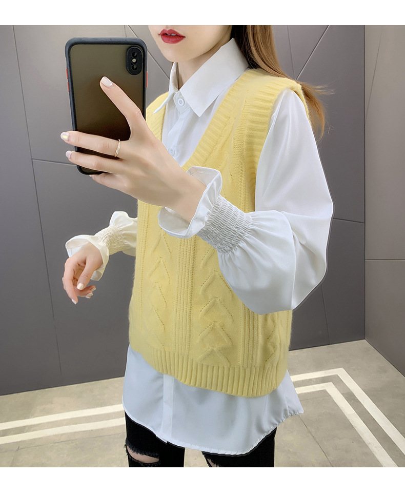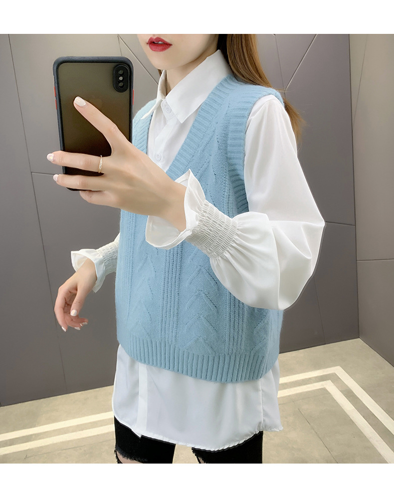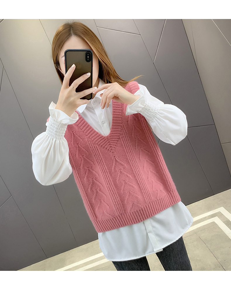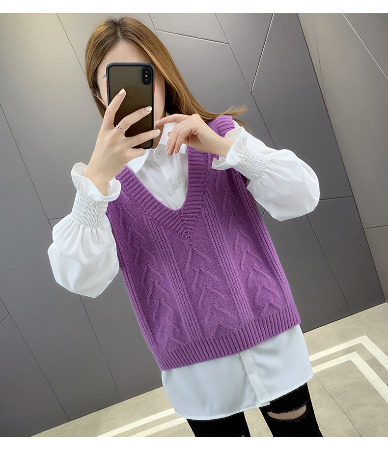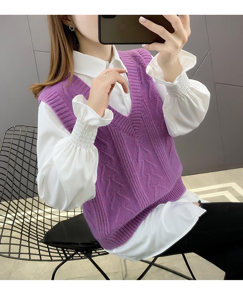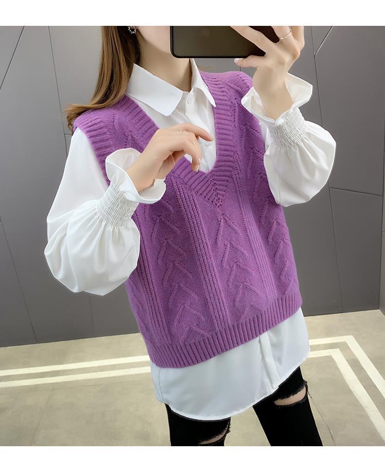 이른 봄 가을 2024 새로운 폭발 여성 조끼 니트 조끼 여성 스웨터 V 넥 느슨한 조끼