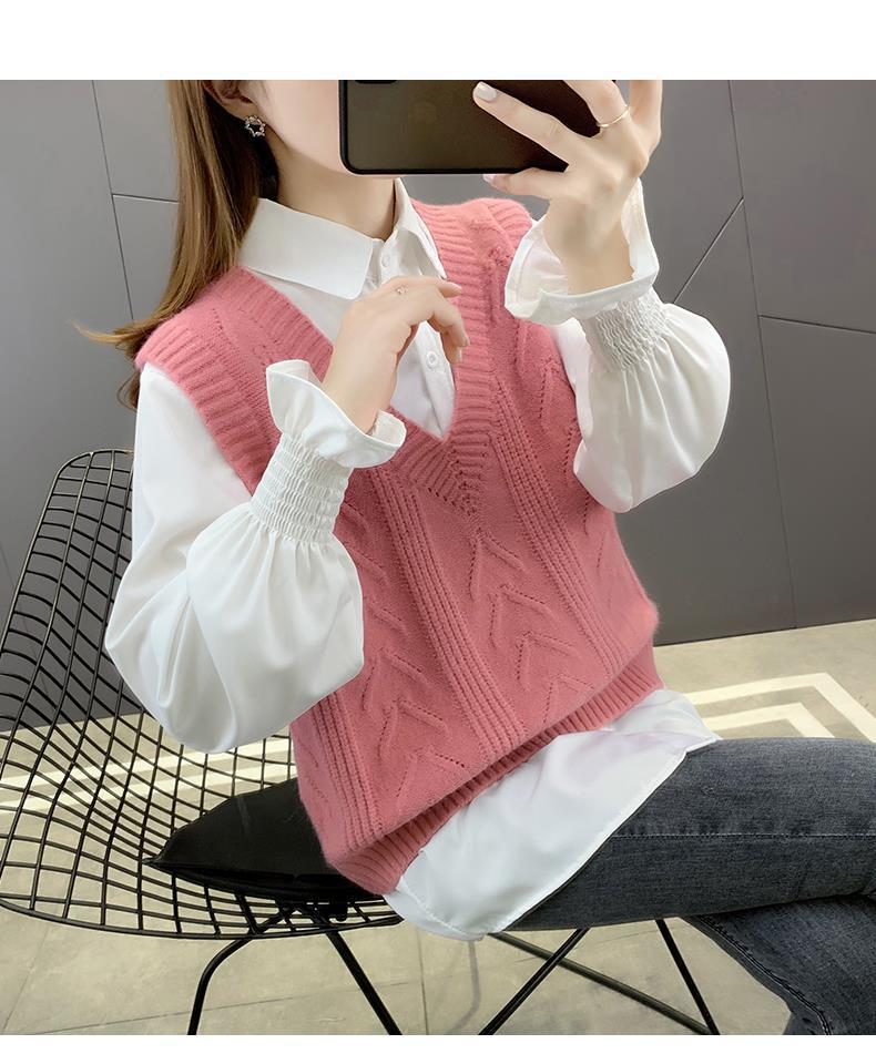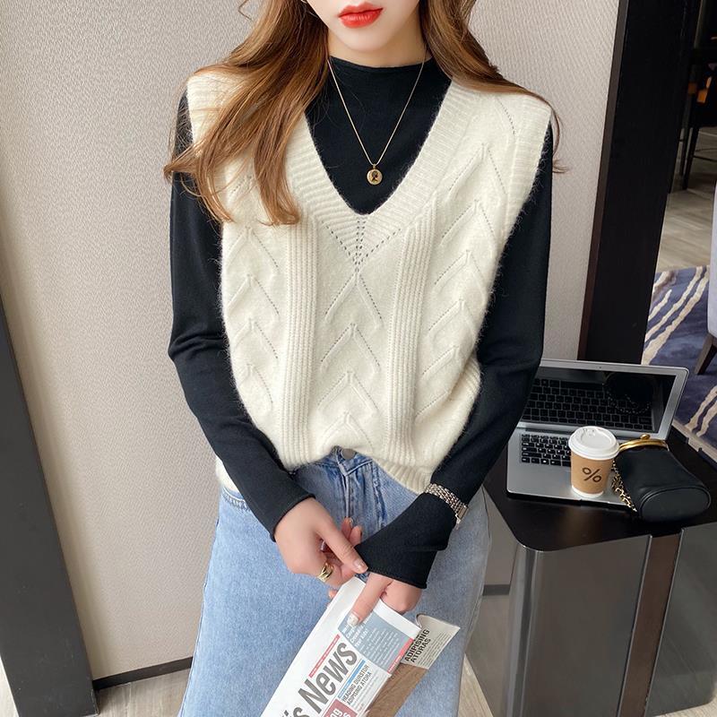 이른 봄 가을 2024 새로운 폭발 여성 조끼 니트 조끼 여성 스웨터 V 넥 느슨한 조끼스토어 가기