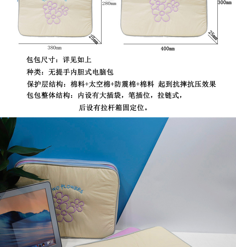 스페이스 코튼 자수 컴퓨터 가방 14inch 여성용 이너백 16inch 충격 방지 코튼 폴리에스터 부드러운 노트북 가방 통기성 및 충격 방지스토어 가기
