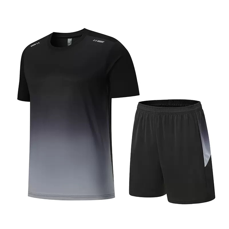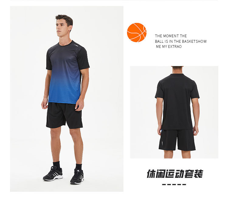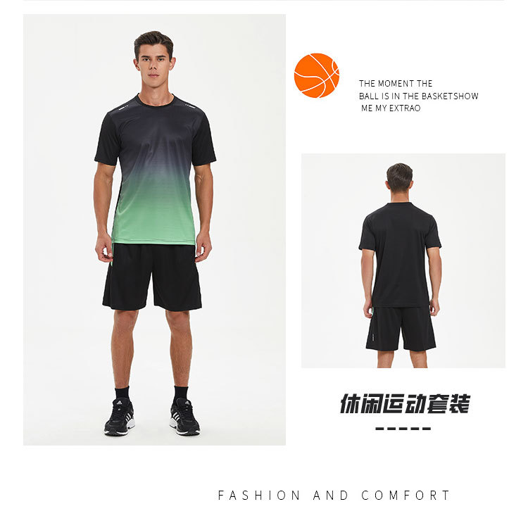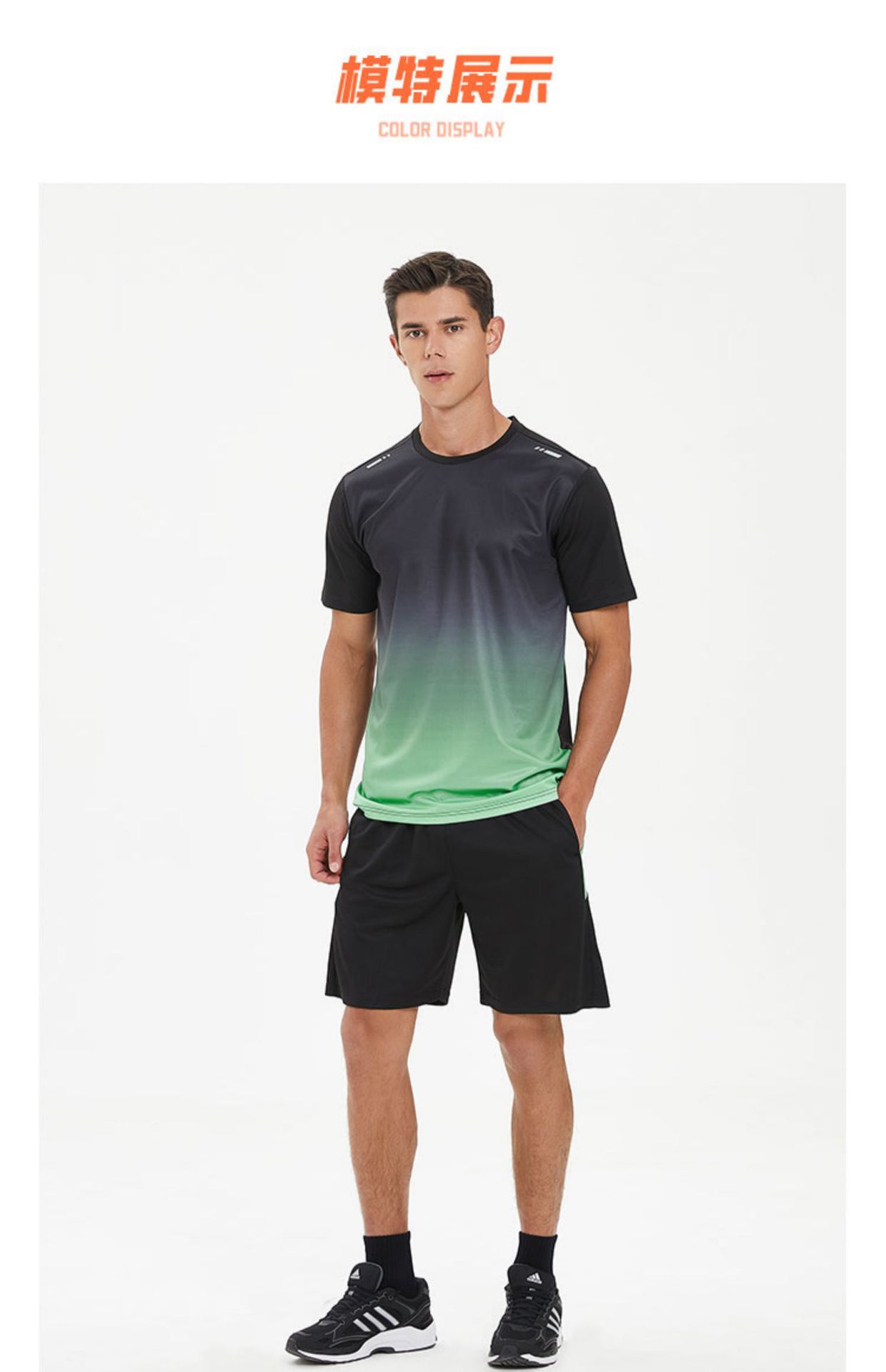 크로스 보더 스포츠 세트 여름 아이스 실크 그라디언트 세트 남성용 반팔 반바지스토어 가기