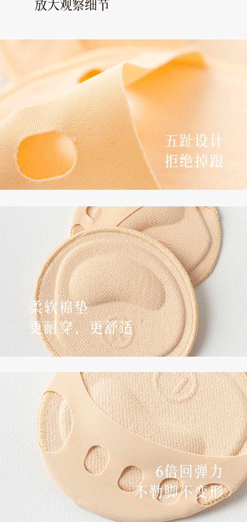 양말 여성용 보트 양말 앞발 하프 포켓 양말 여름 미끄럼 방지 다섯 손가락 발가락 양말 스폰지 패드 단색 면 바닥 보이지 않는 양말