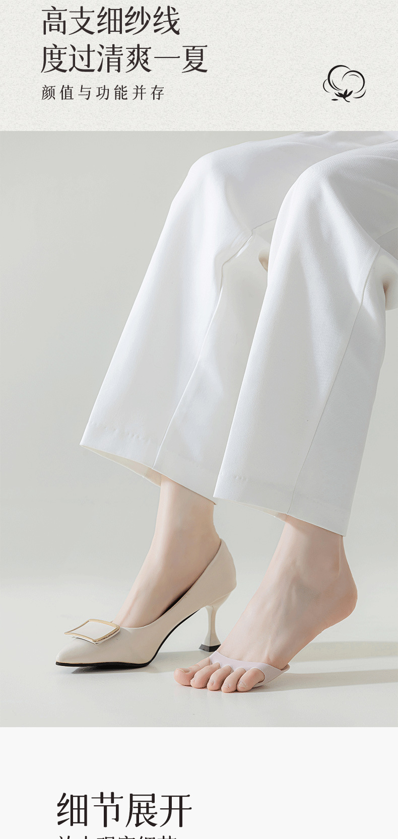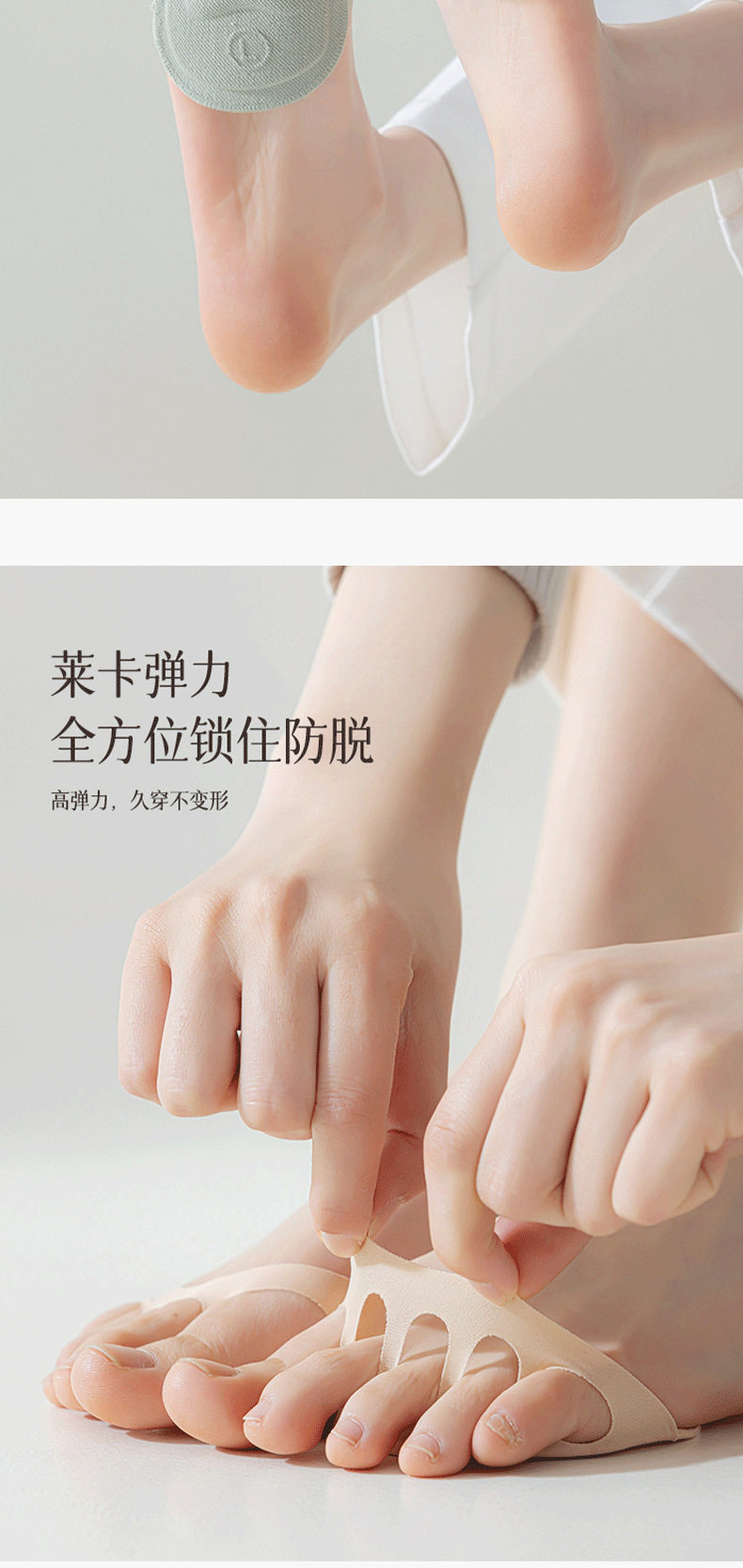 양말 여성용 보트 양말 앞발 하프 포켓 양말 여름 미끄럼 방지 다섯 손가락 발가락 양말 스폰지 패드 단색 면 바닥 보이지 않는 양말스토어 가기