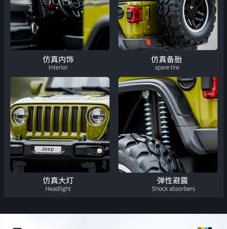 대형 Jianyuan 1:24 지프 랭글러 모델 합금 시뮬레이션 어린이 장난감 자동차 트레몰로 라이브 추천스토어 가기