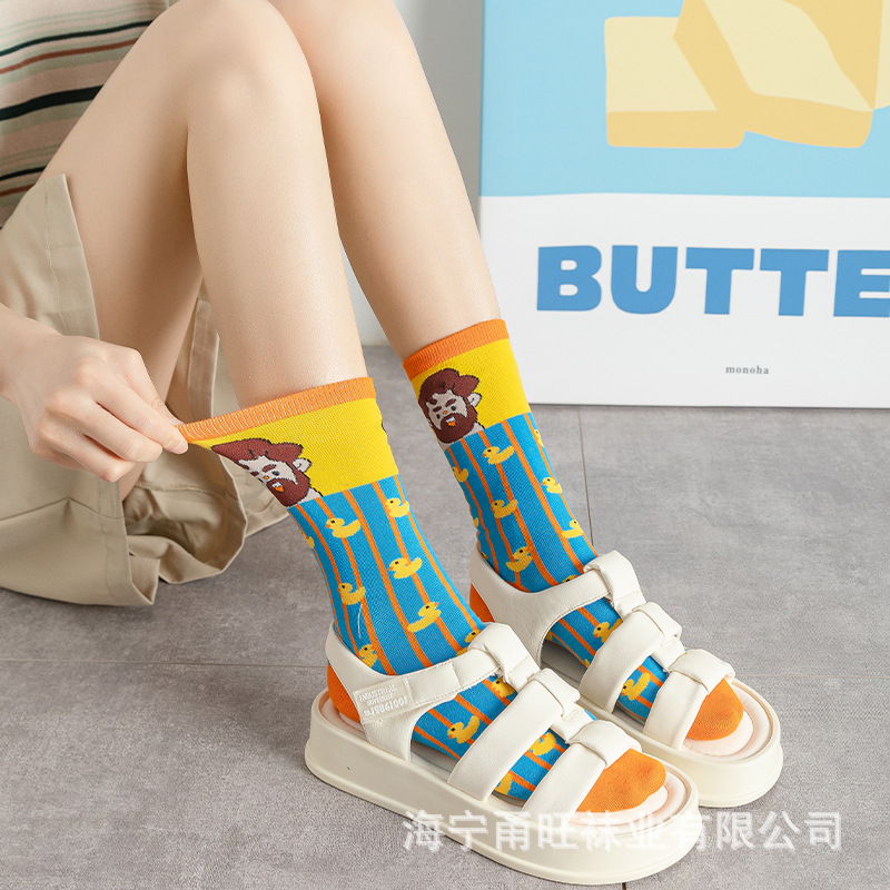 봄과 가을 창조적 인 양말 여자 커플 양말 성격 만화 자카드 스타킹 유행 스타킹 재고 도매