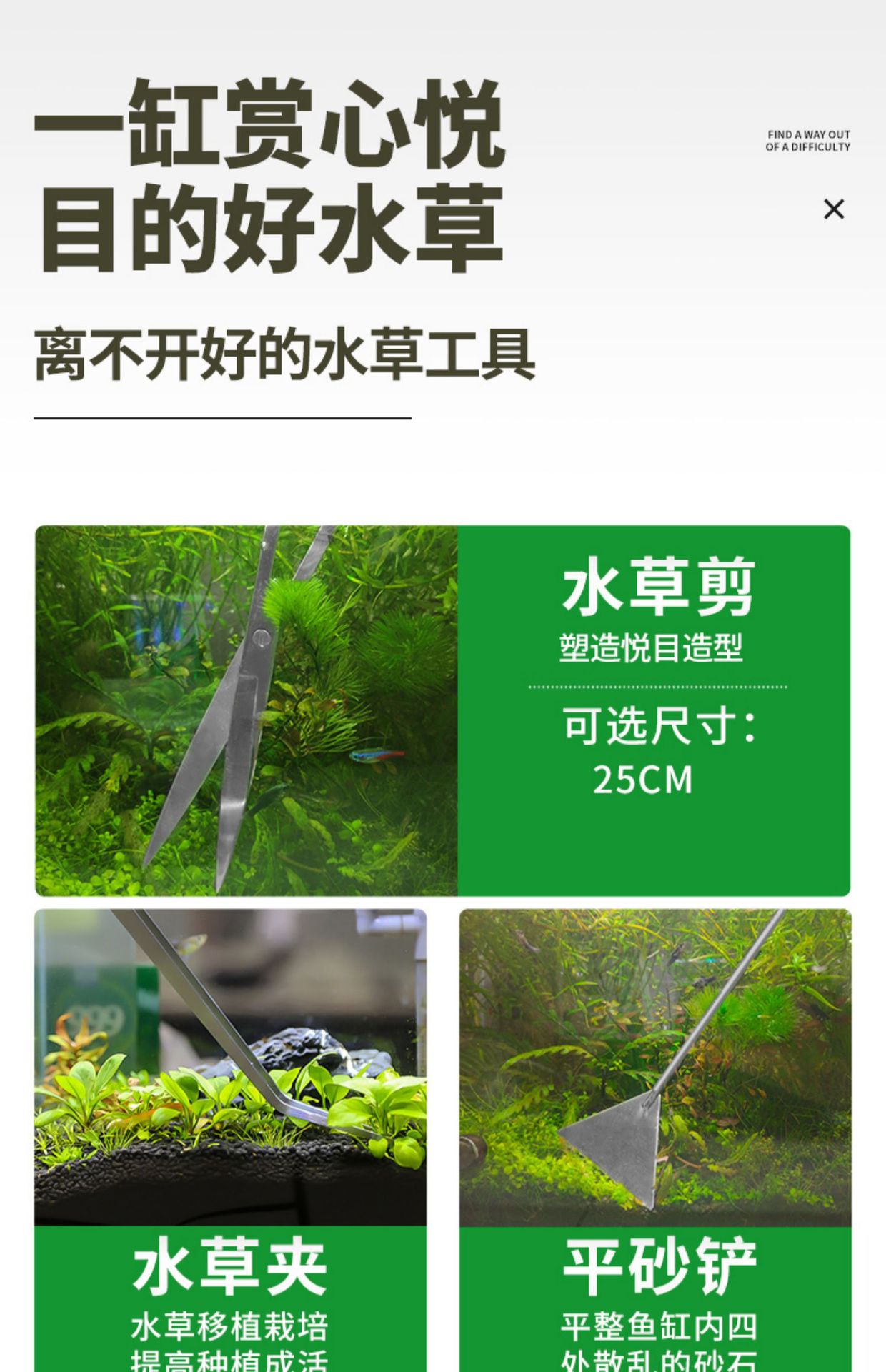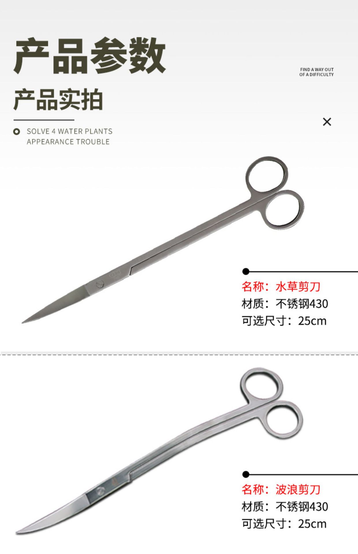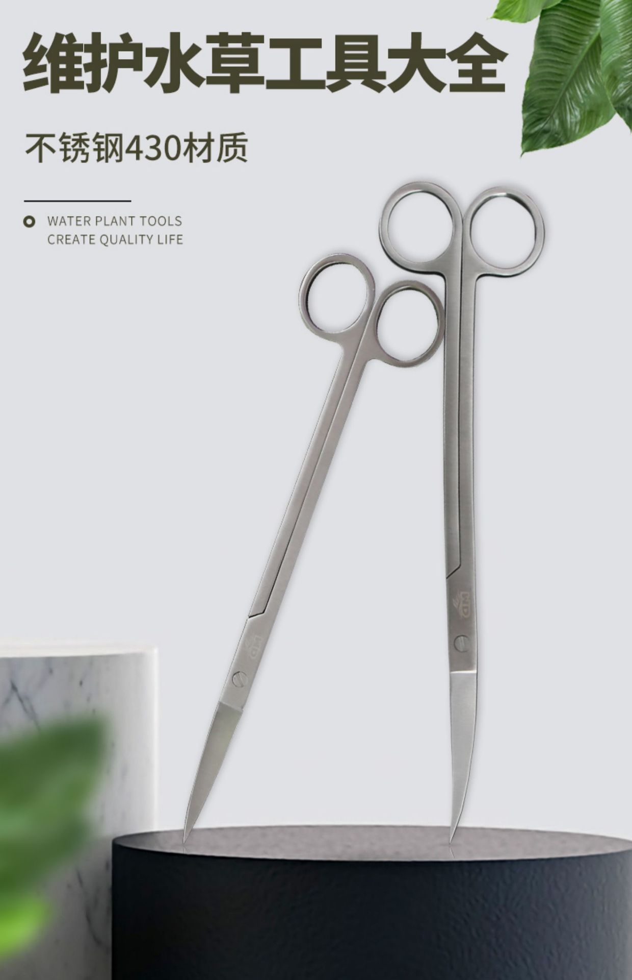 스테인레스 스틸 물 잔디 커터 잔디 탱크 트리밍 도구 세트 곡선 가위 핀셋 클립 긴 조류 긁기 칼 플랫 모래 삽 팔꿈치 가위스토어 가기