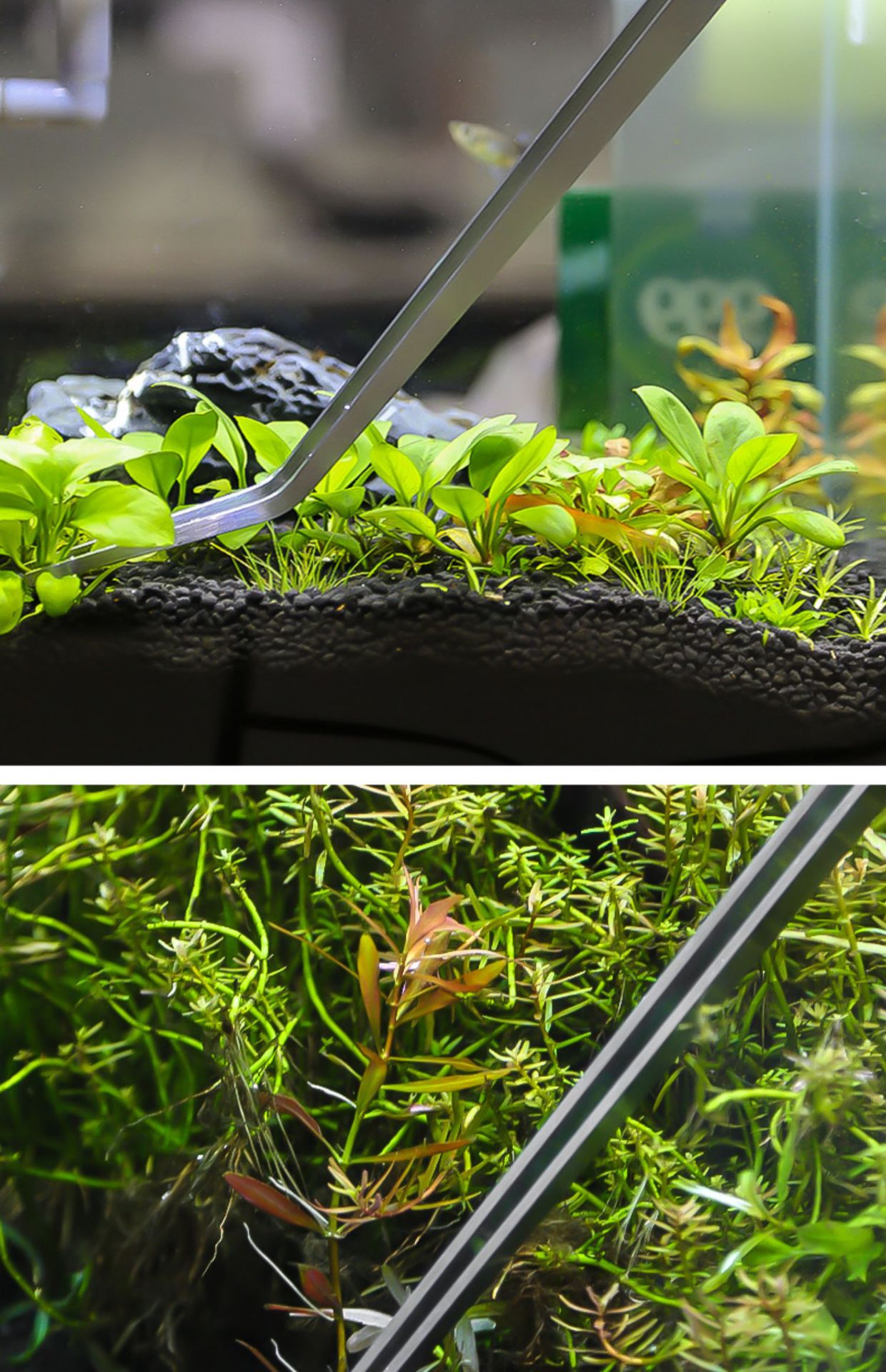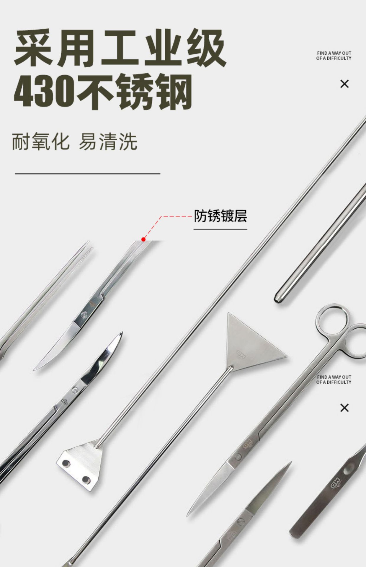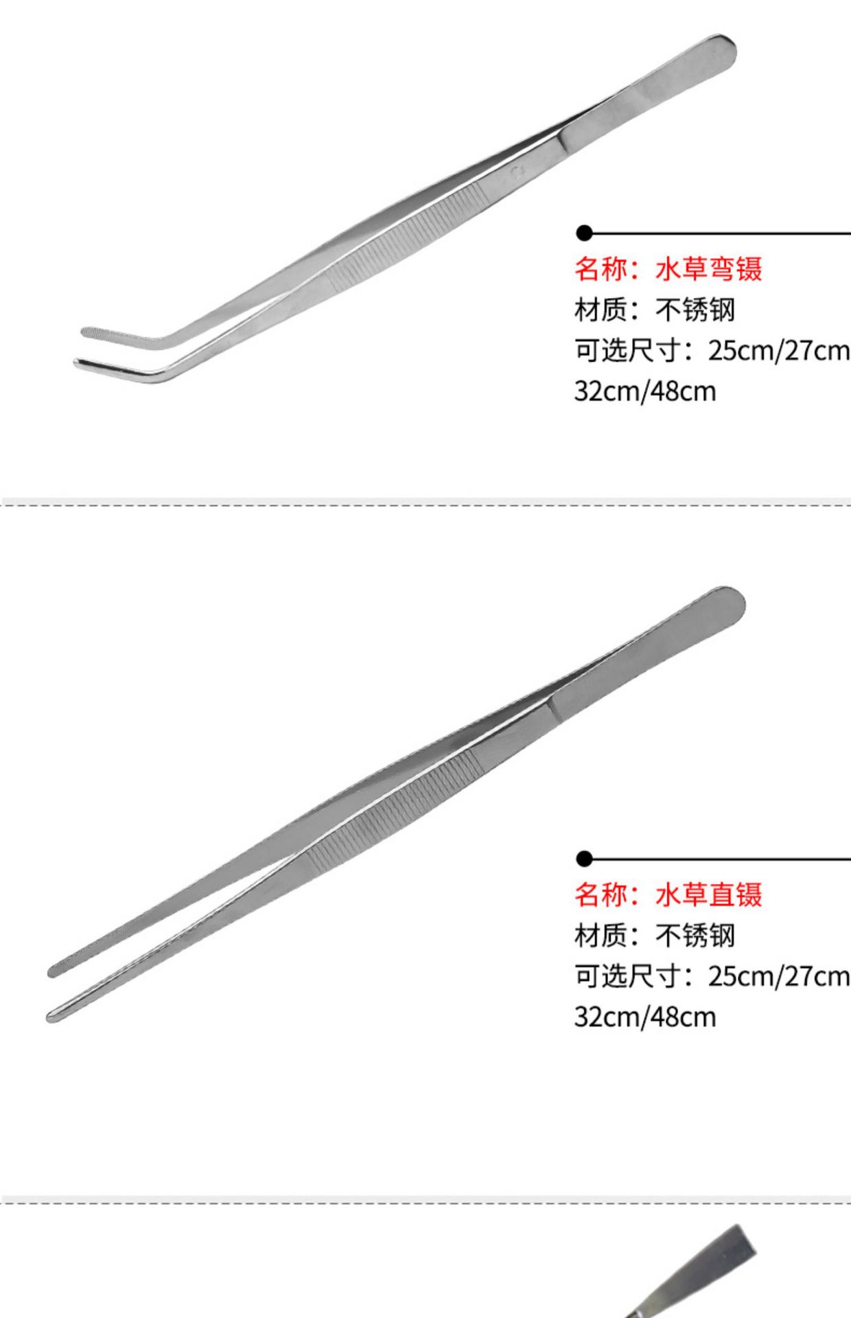 스테인레스 스틸 물 잔디 커터 잔디 탱크 트리밍 도구 세트 곡선 가위 핀셋 클립 긴 조류 긁기 칼 플랫 모래 삽 팔꿈치 가위