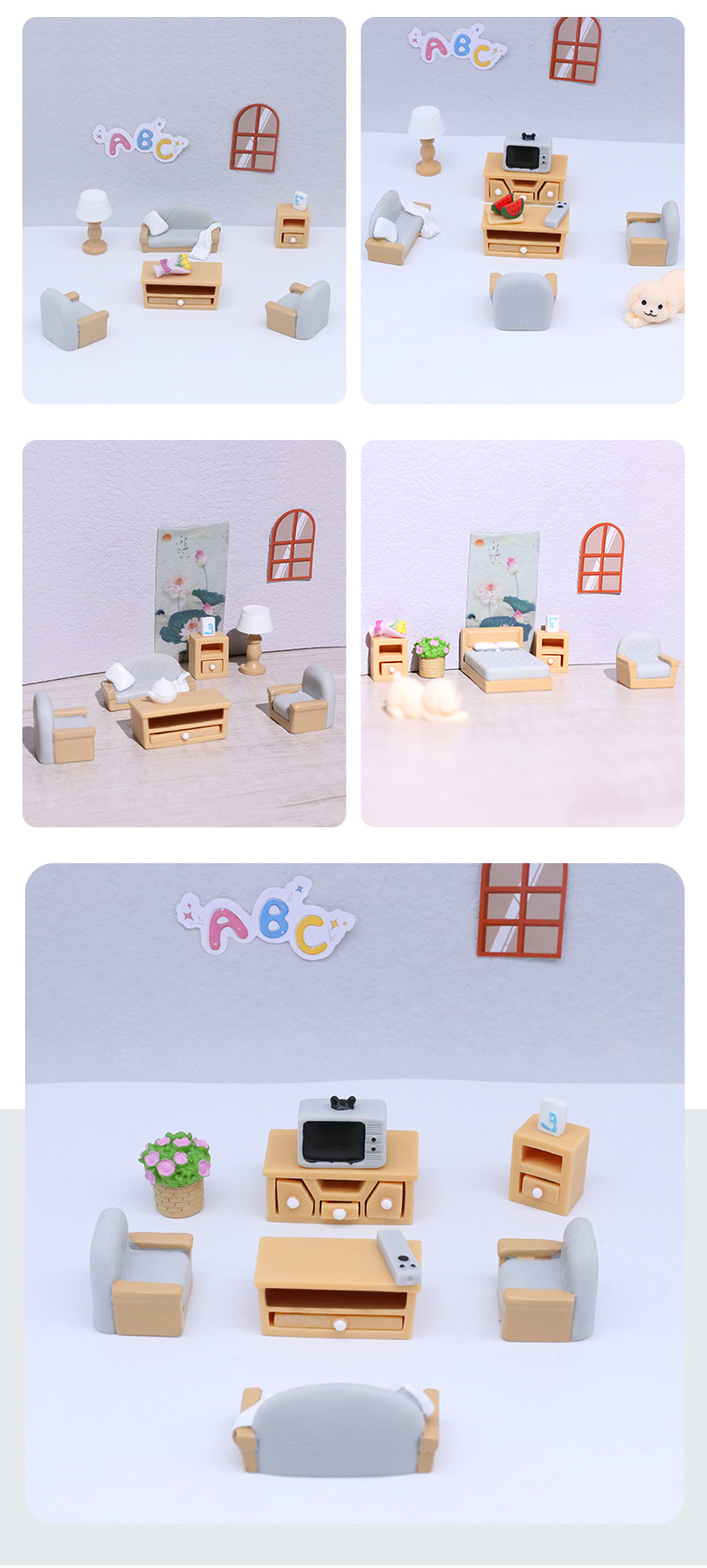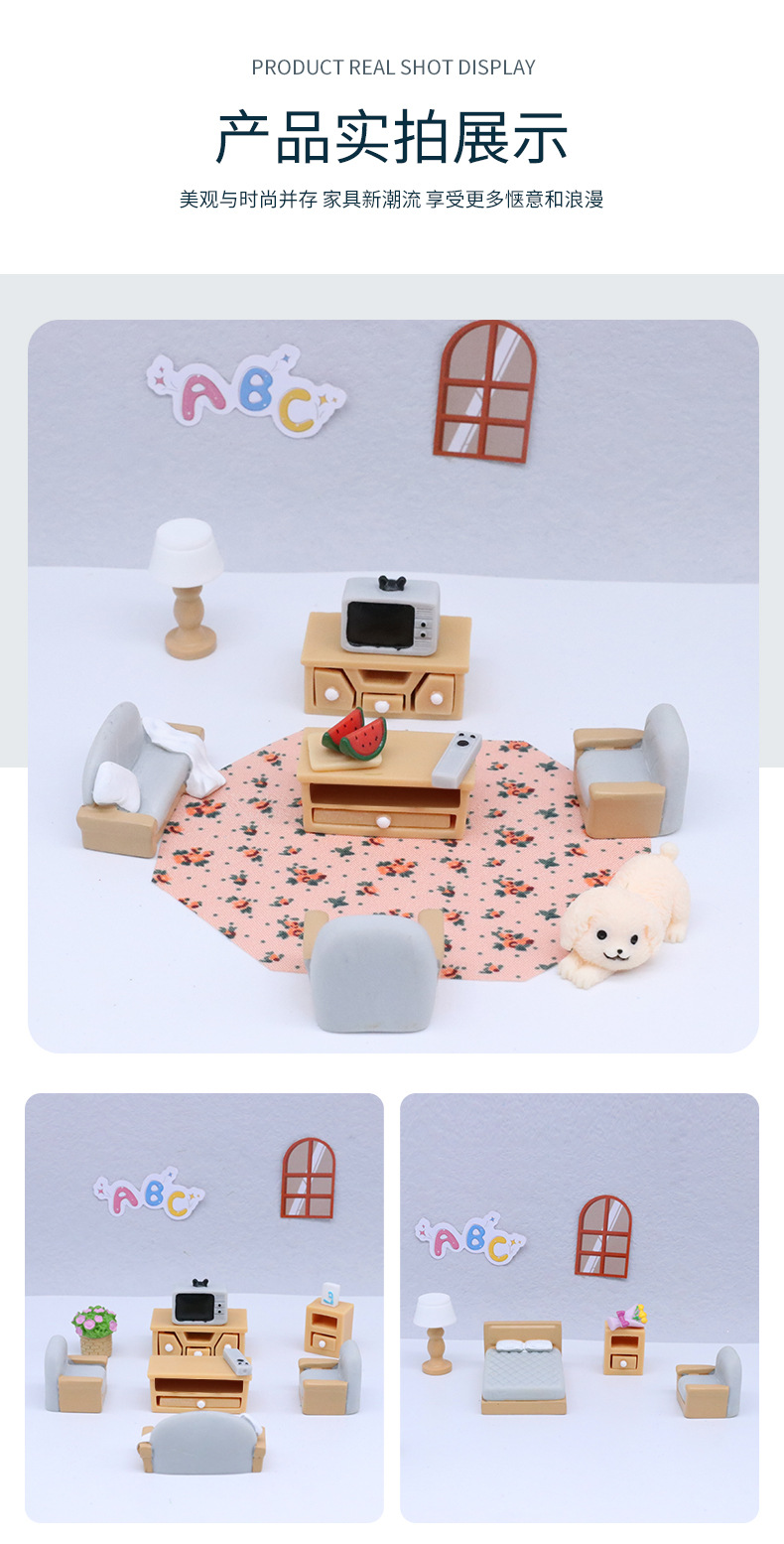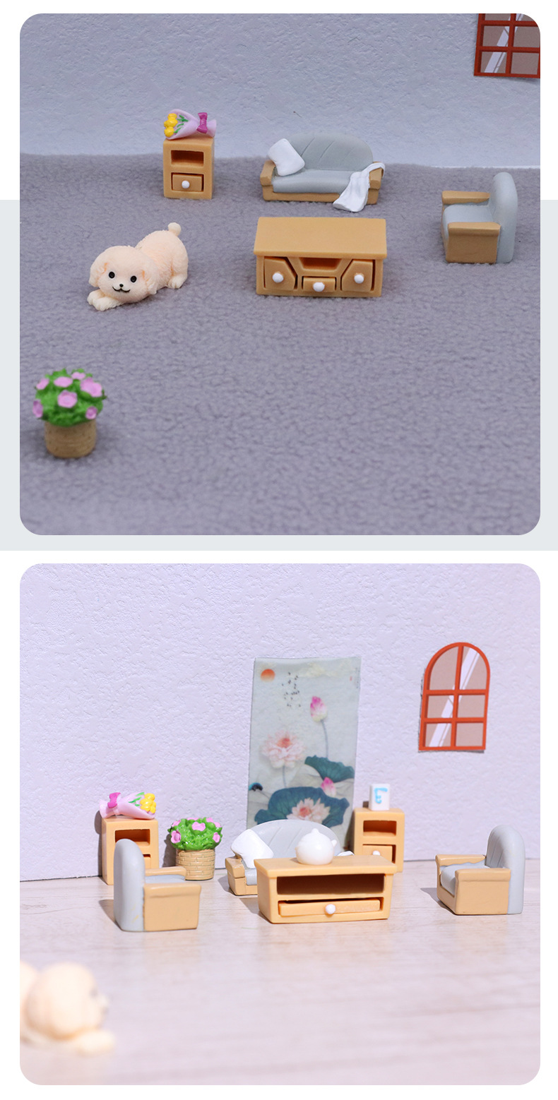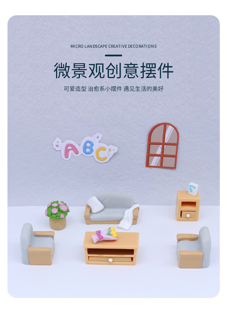 마이크로 풍경 만화 미니 시뮬레이션 가구 세트 거실 조경 가정 장식 작은 액세서리 수지 장식품