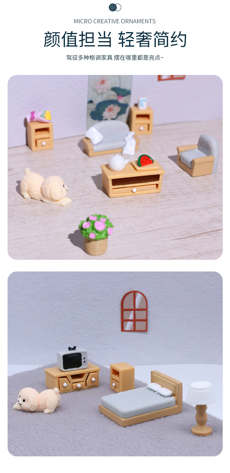 마이크로 풍경 만화 미니 시뮬레이션 가구 세트 거실 조경 가정 장식 작은 액세서리 수지 장식품스토어 가기