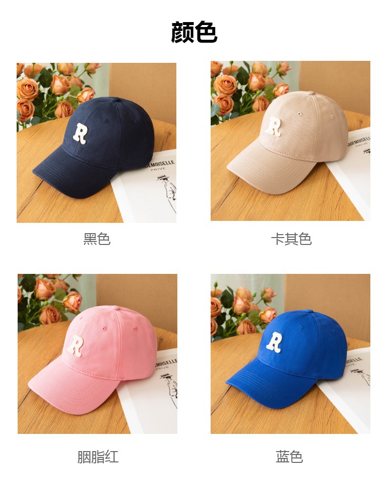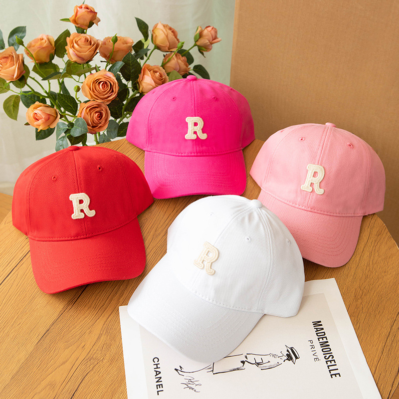 2023 New Letter R 라벨 모자 남녀 한국 스타일 트렌디 자수 면 야구 모자 심플 올 매치 캡스토어 가기