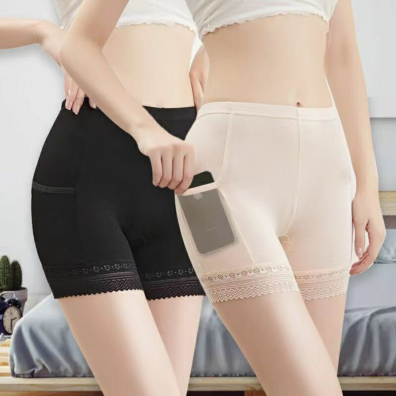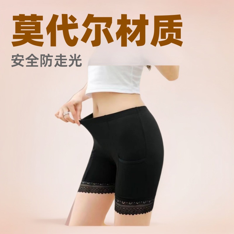 여름용 모달 안전바지, 포켓이 있는 레깅스, 노출방지, 플러스 사이즈, 하이웨이스트, 3부 안전바지, 외부 착용 가능