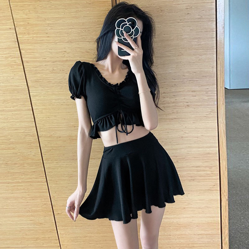 2024 새로운 핫 스타일 소녀 수영복 분할 스커트 스타일 높은 허리 슬리밍 한국 섹시한 작은 가슴 보수적 인 온천 수영복스토어 가기