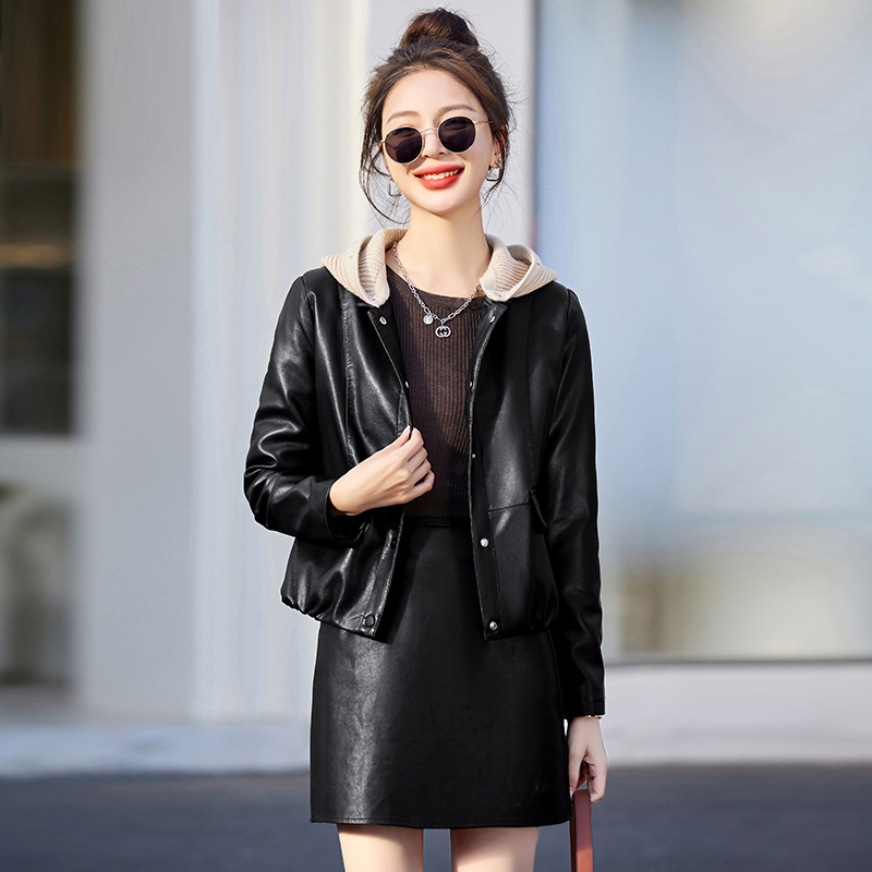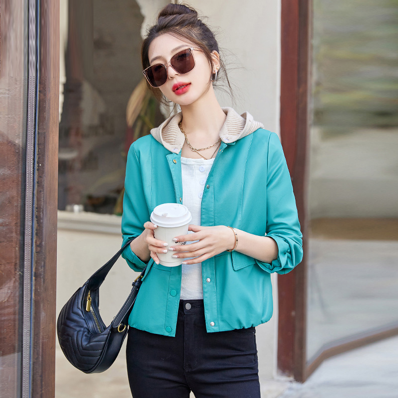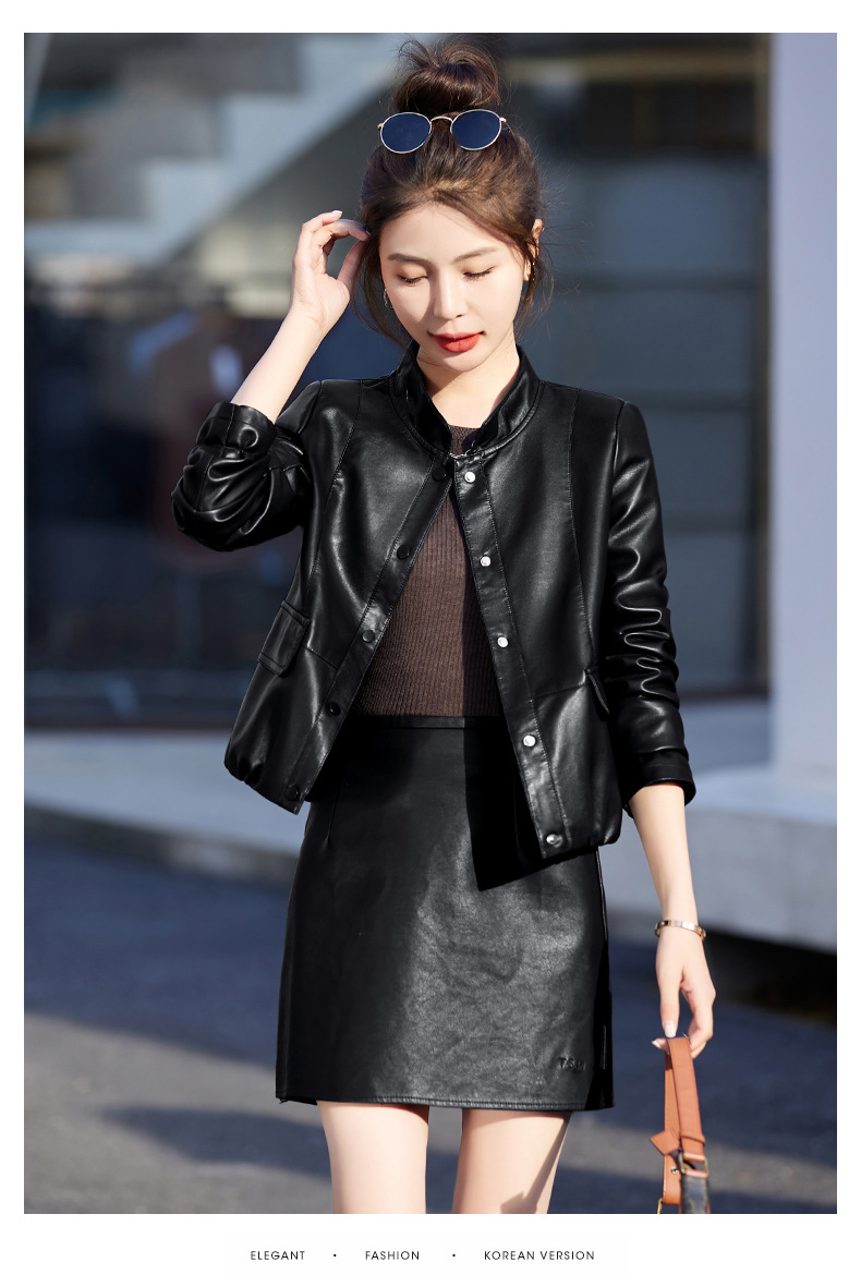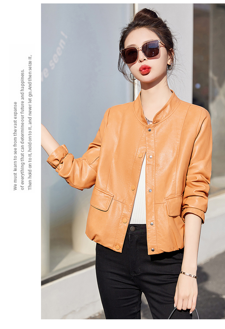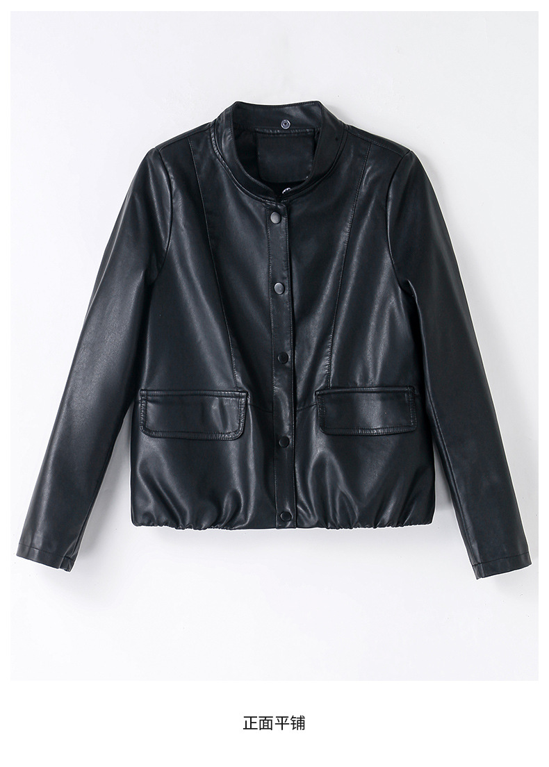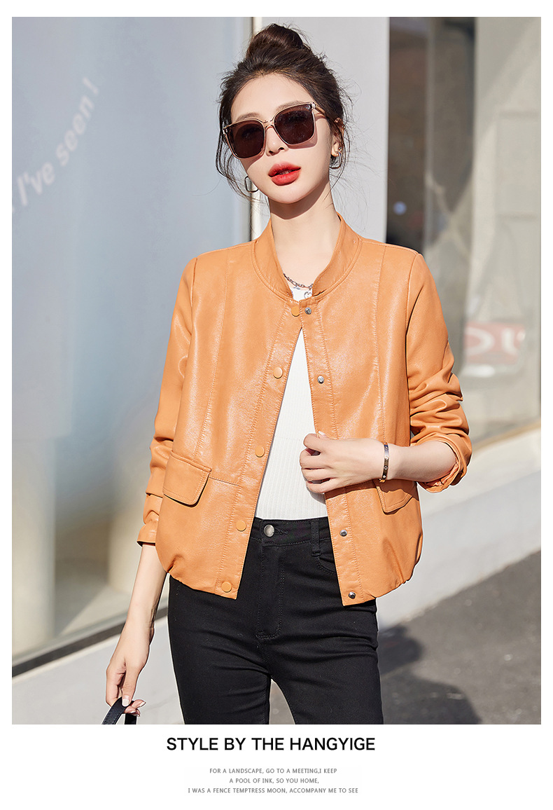 가죽 코트 여성용 짧은 2023 봄과 가을 신상품 캐주얼 연령 감소 아름다운 세련된 PU 가죽 오토바이 재킷