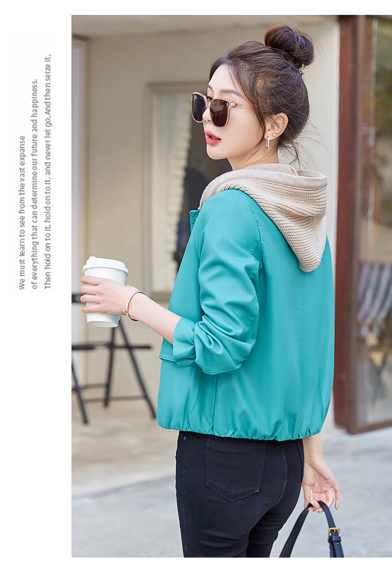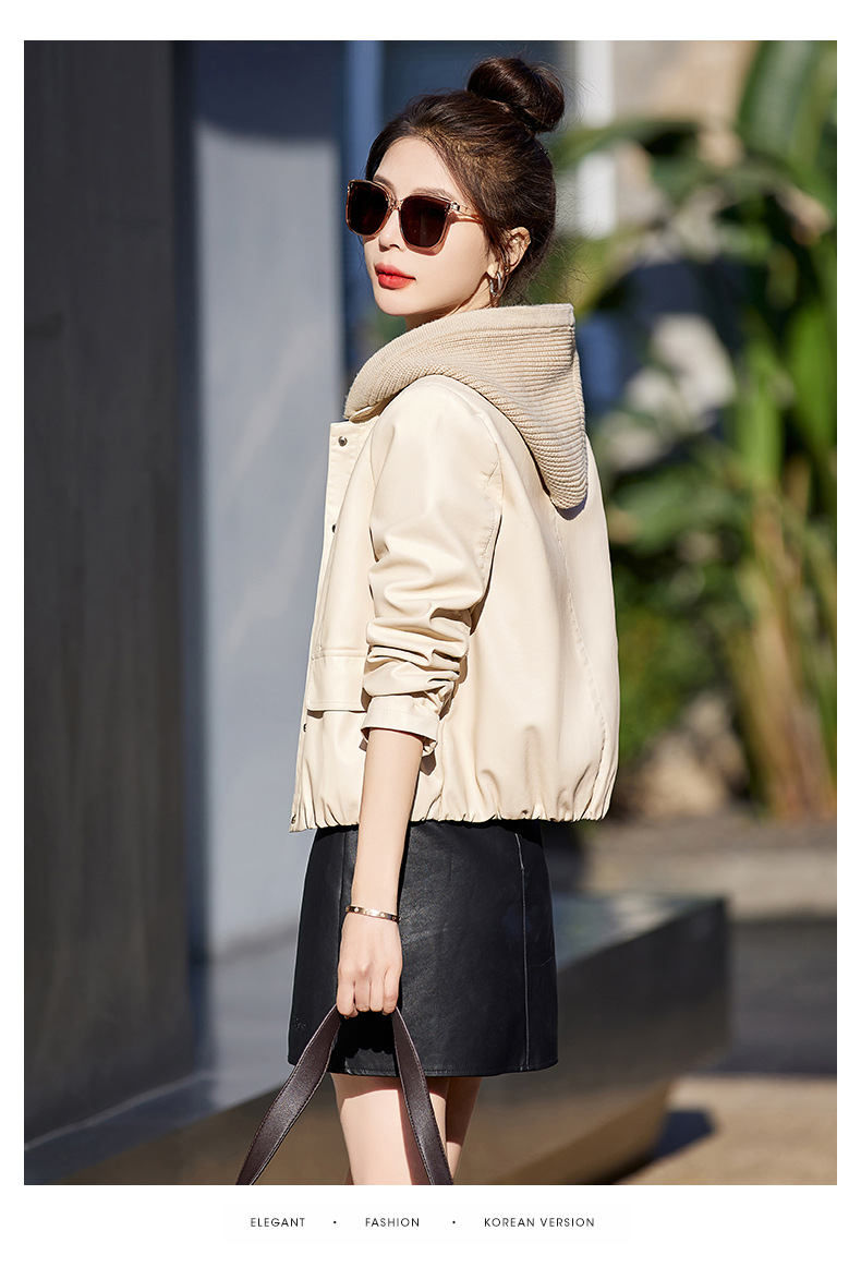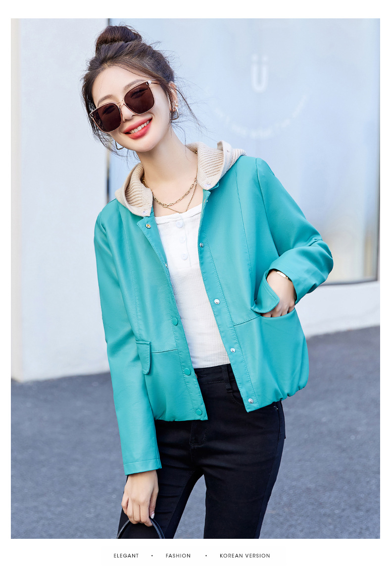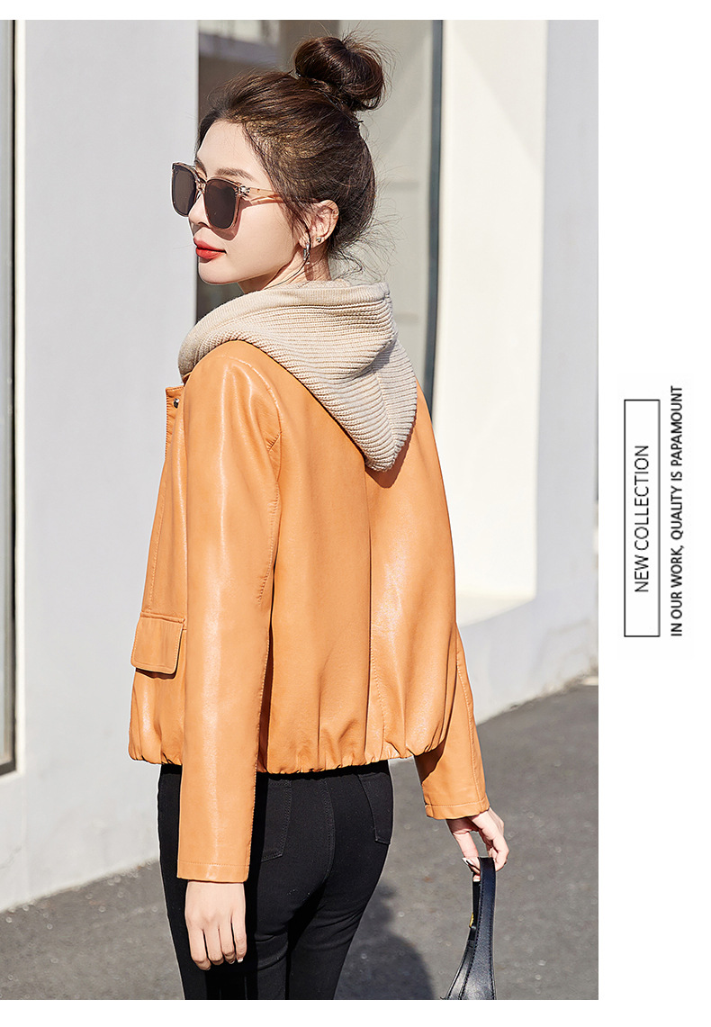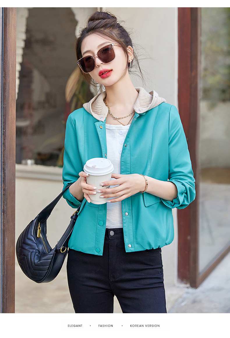 가죽 코트 여성용 짧은 2023 봄과 가을 신상품 캐주얼 연령 감소 아름다운 세련된 PU 가죽 오토바이 재킷