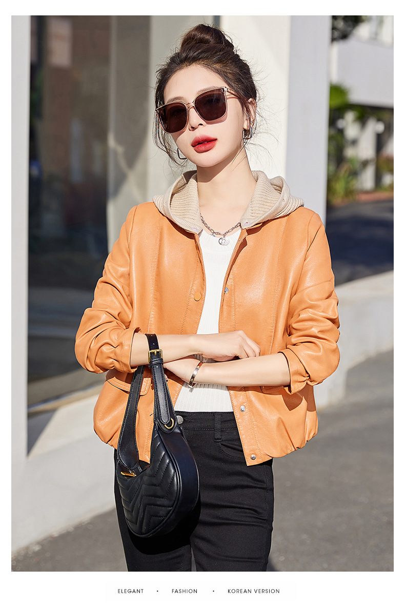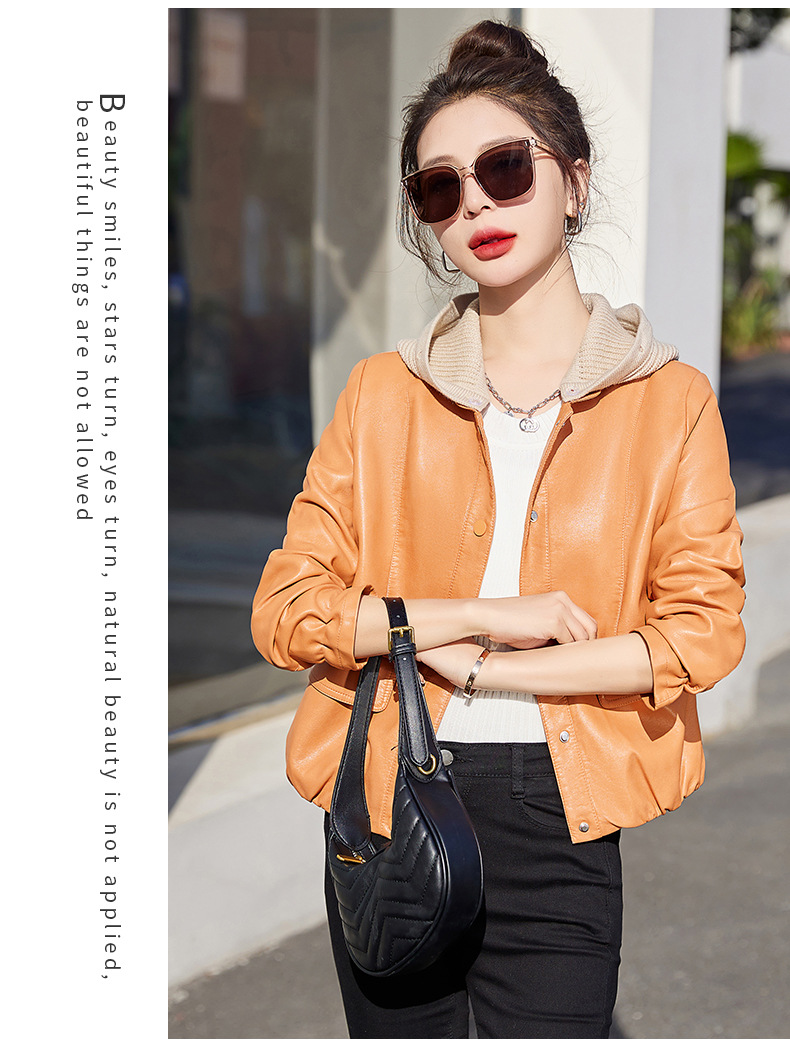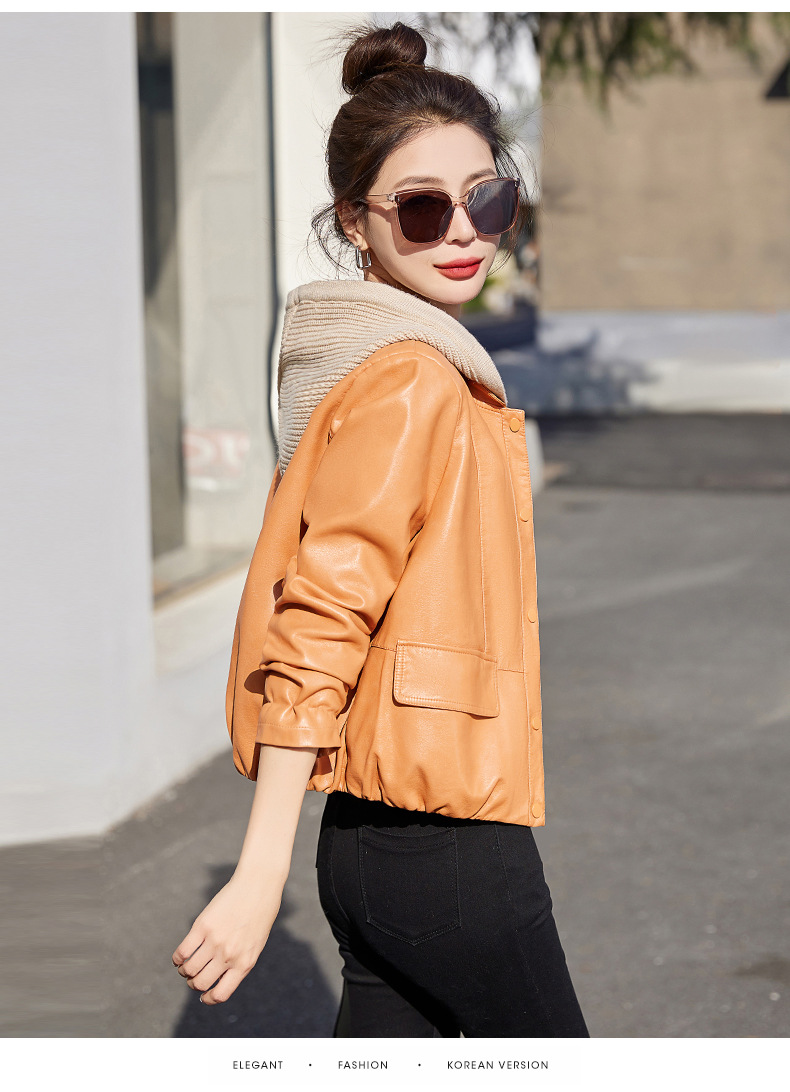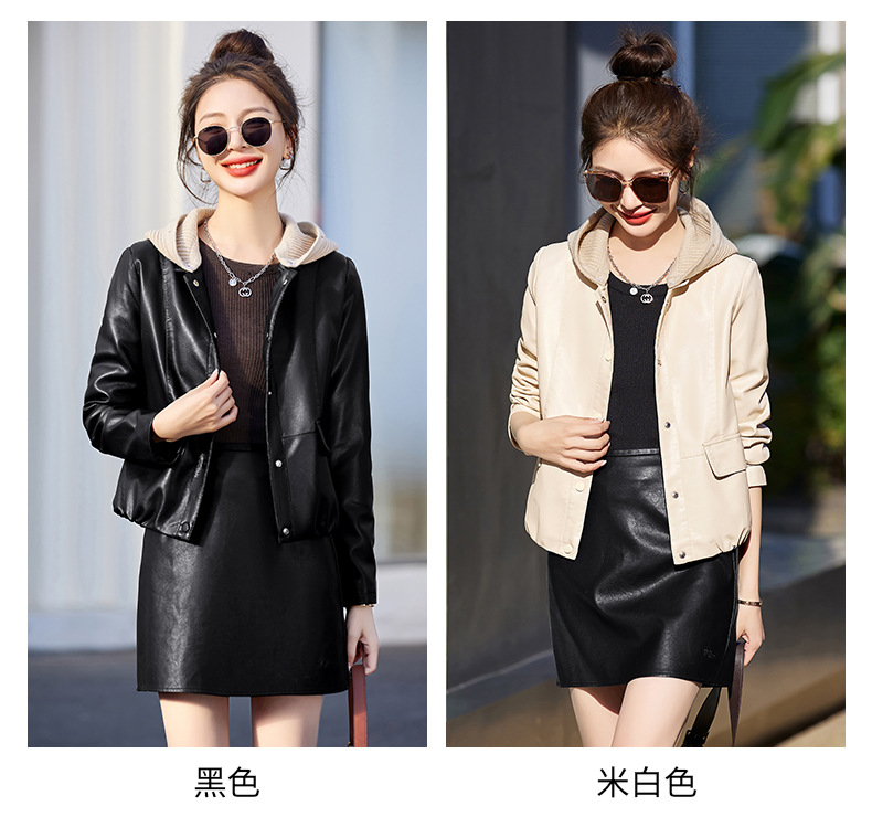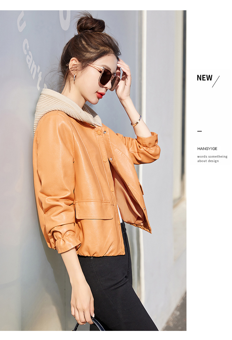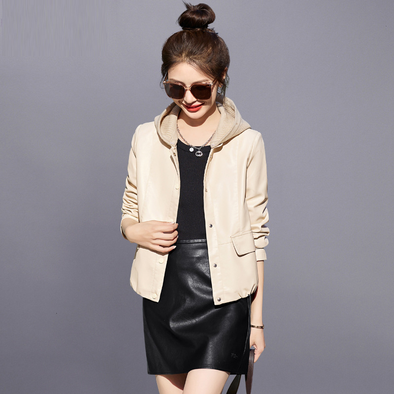 가죽 코트 여성용 짧은 2023 봄과 가을 신상품 캐주얼 연령 감소 아름다운 세련된 PU 가죽 오토바이 재킷
