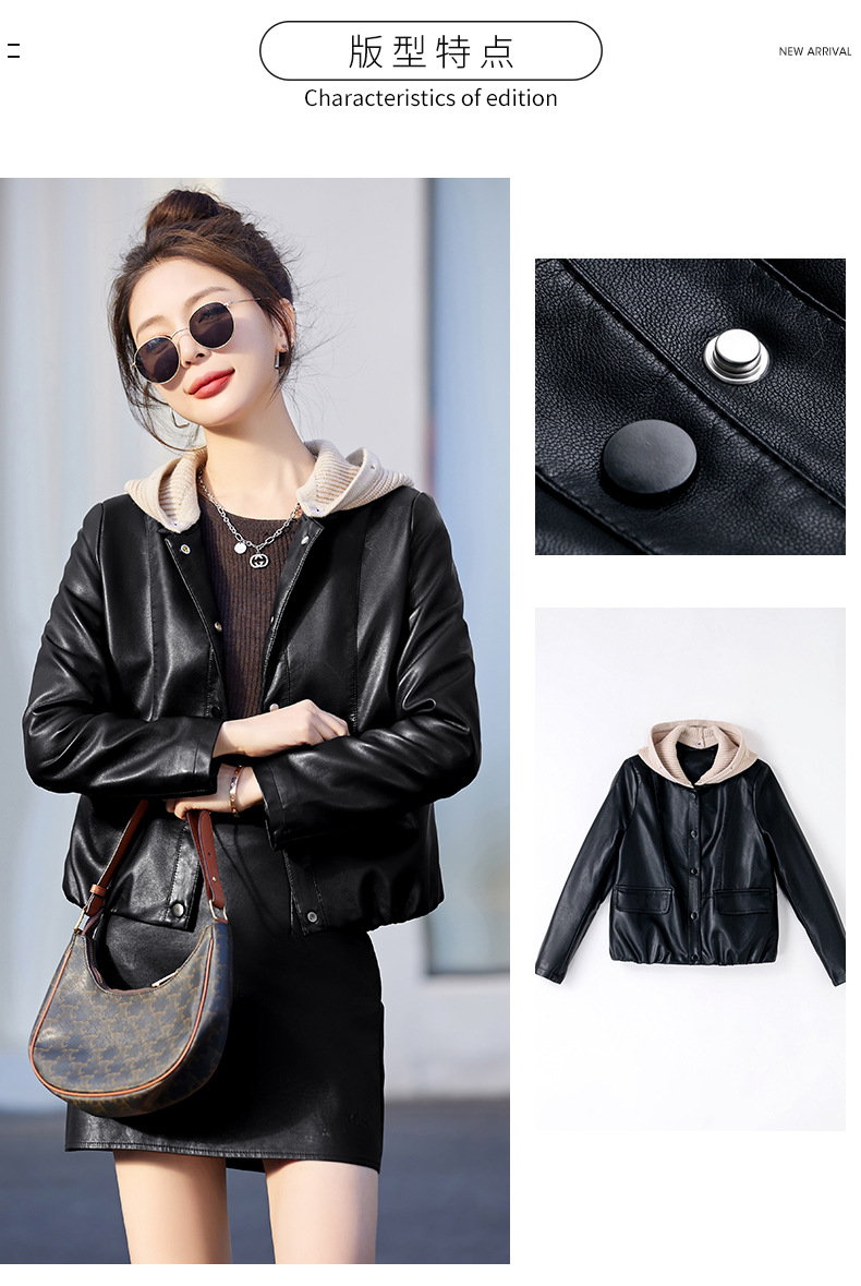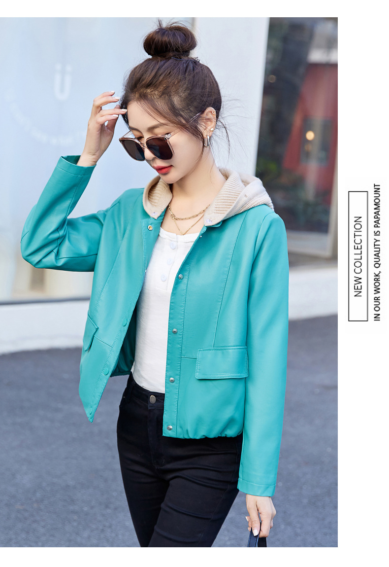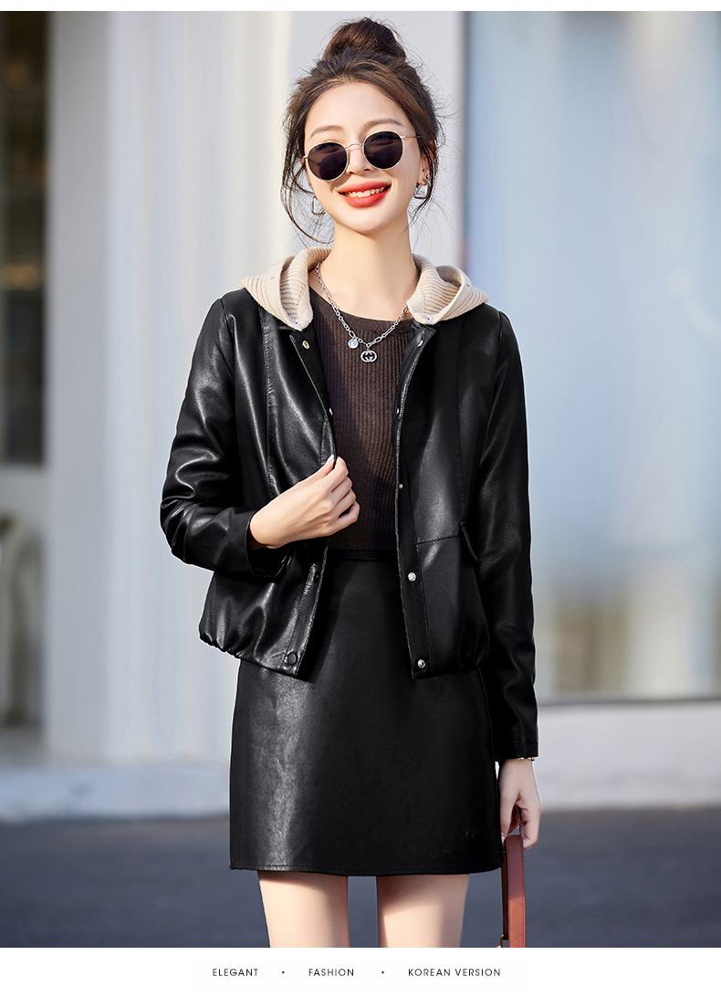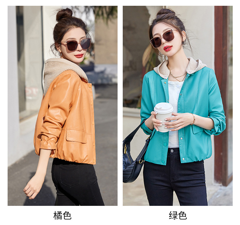 가죽 코트 여성용 짧은 2023 봄과 가을 신상품 캐주얼 연령 감소 아름다운 세련된 PU 가죽 오토바이 재킷스토어 가기