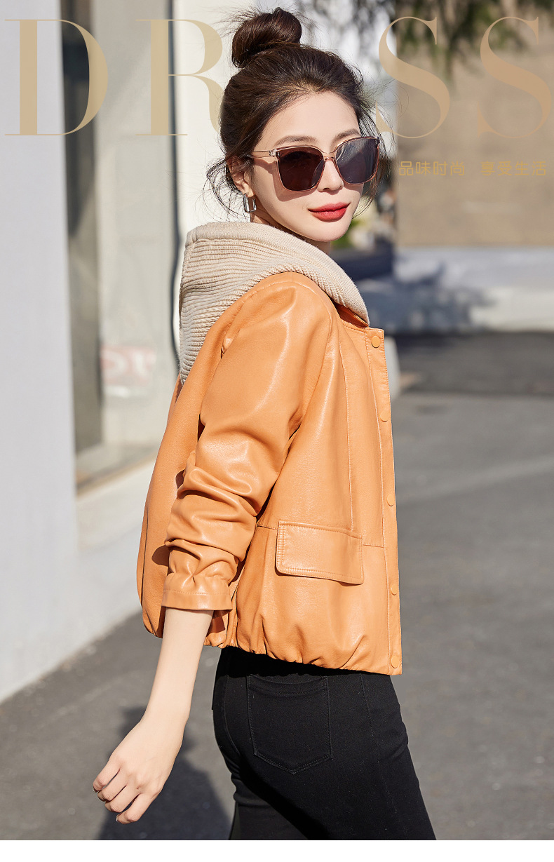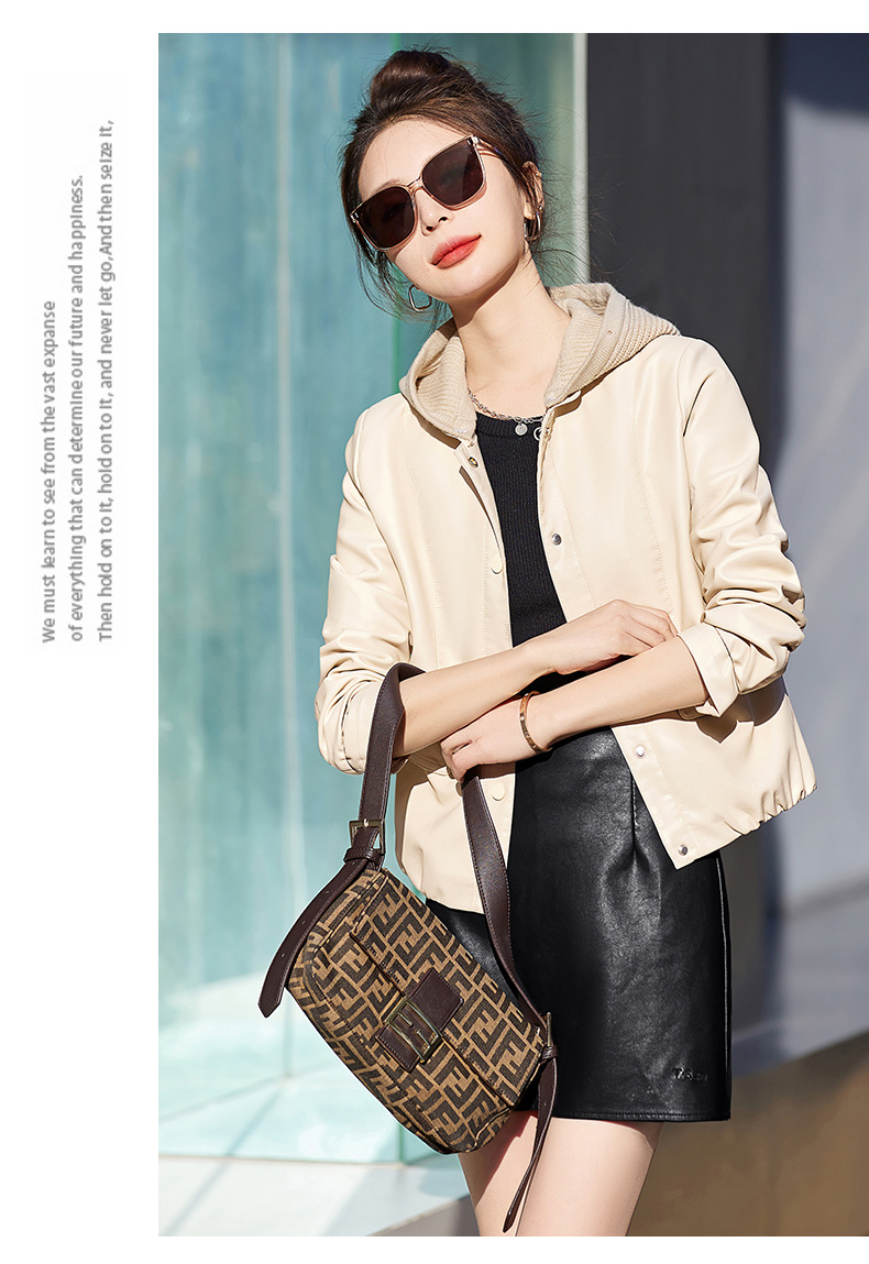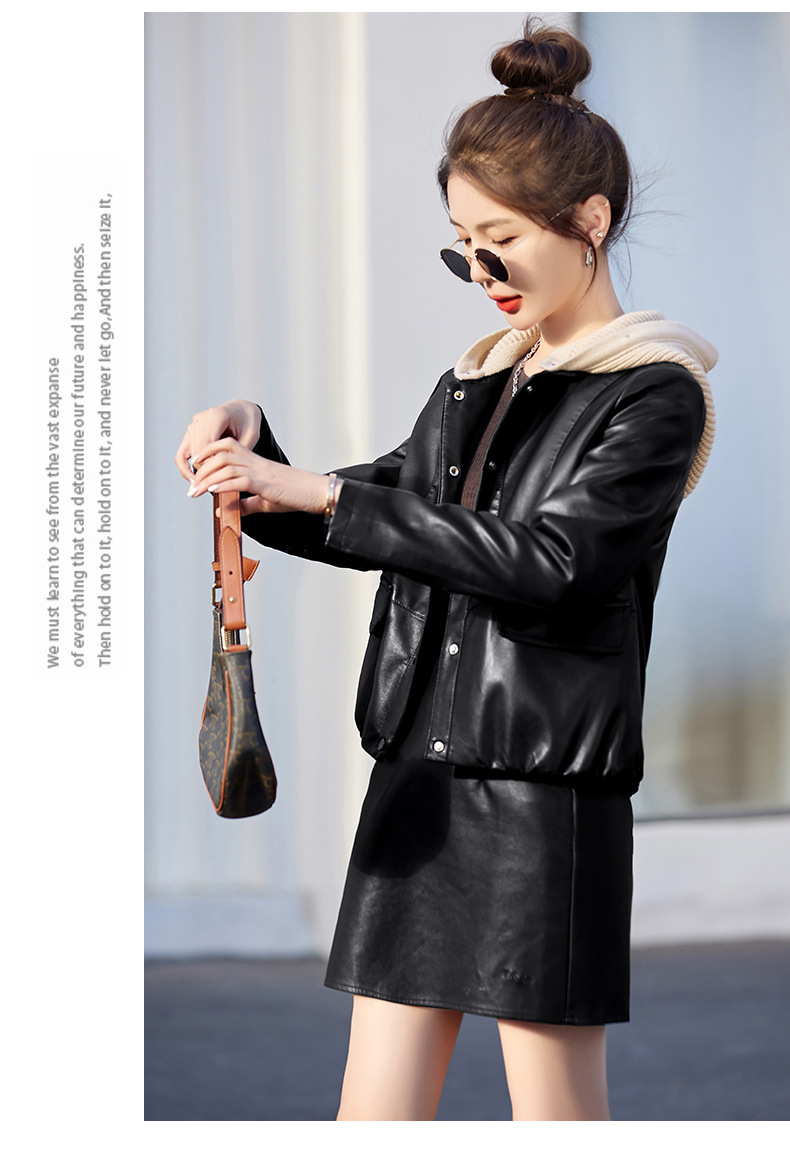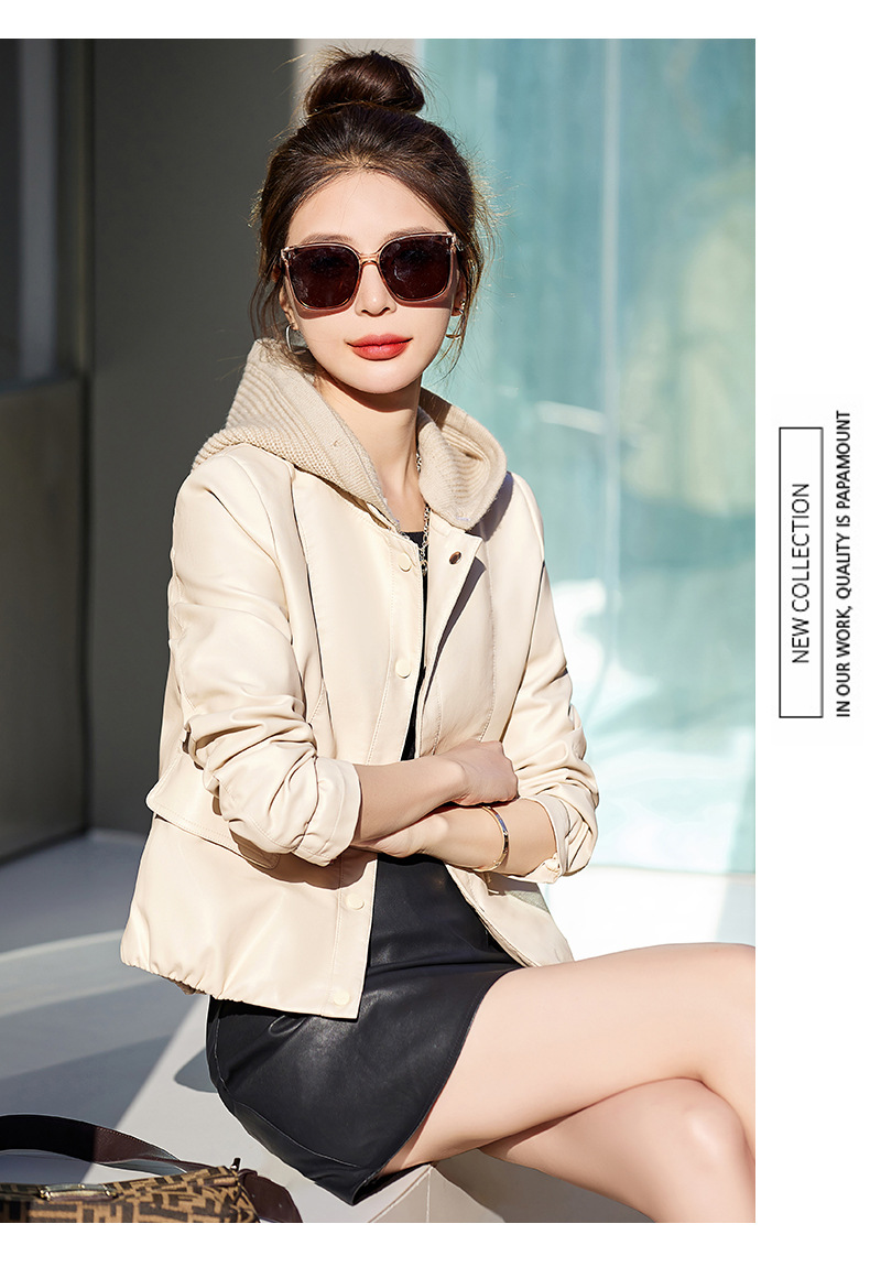 가죽 코트 여성용 짧은 2023 봄과 가을 신상품 캐주얼 연령 감소 아름다운 세련된 PU 가죽 오토바이 재킷스토어 가기