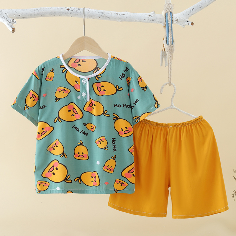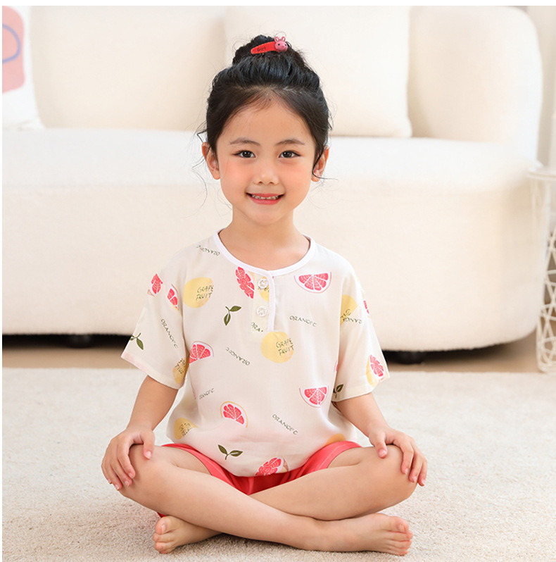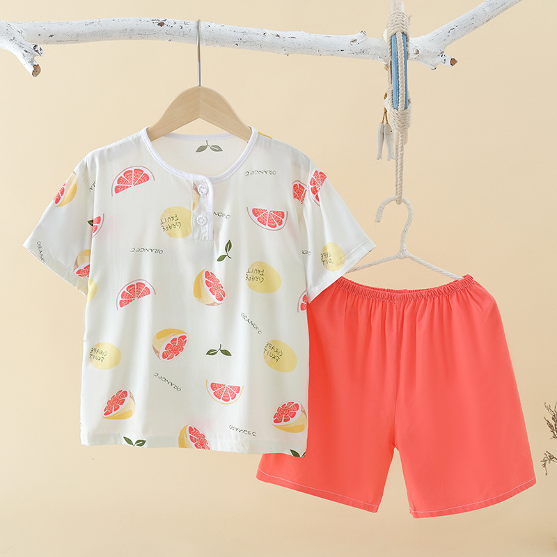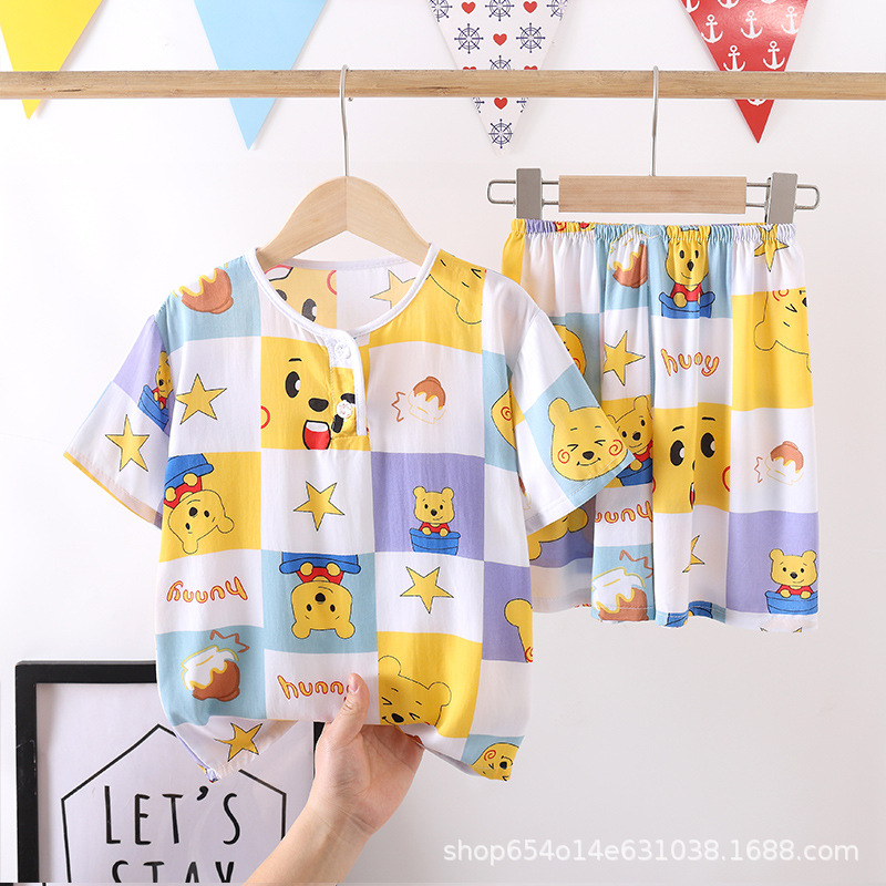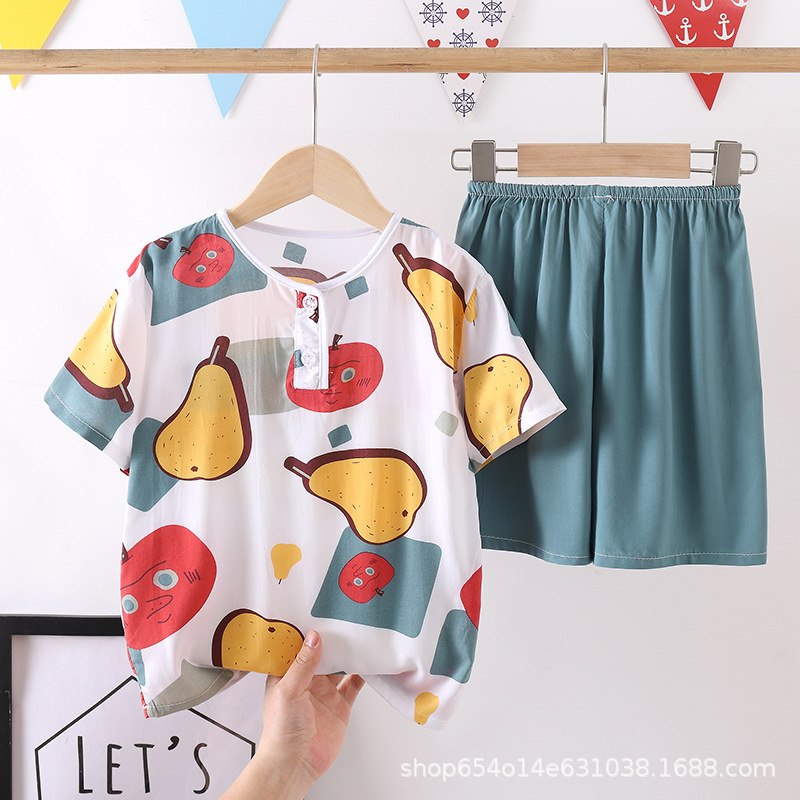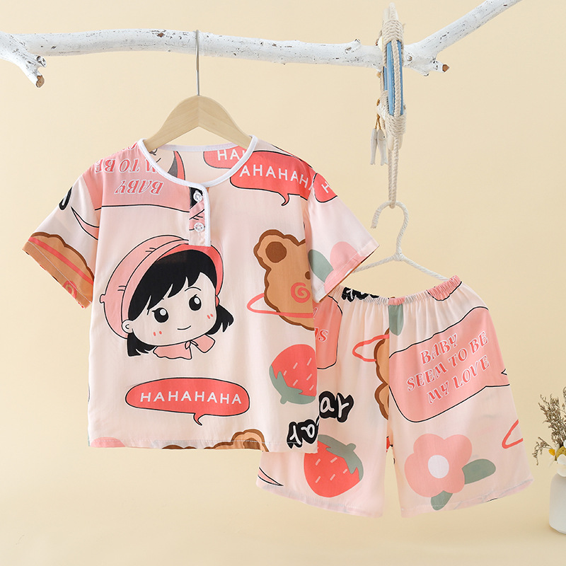 여름 어린이 잠옷 얇은 면 실크 세트 반팔 홈 에어컨 의류 소년 소녀 어린이 면 실크 아동 의류스토어 가기