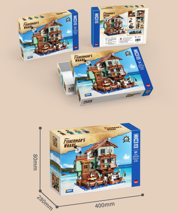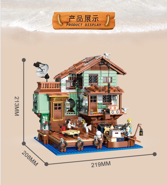 Zhe Gao MINI 00421 어부의 부두 어부의 오두막 스트리트 뷰 빌딩 블록 도시 MOC 건물 조립 장난감