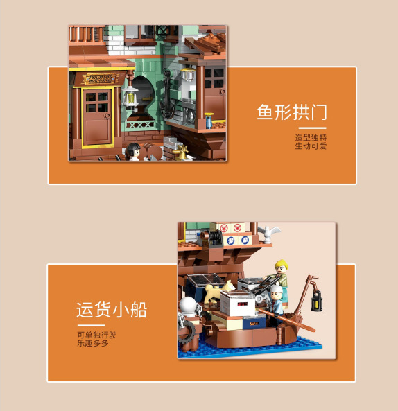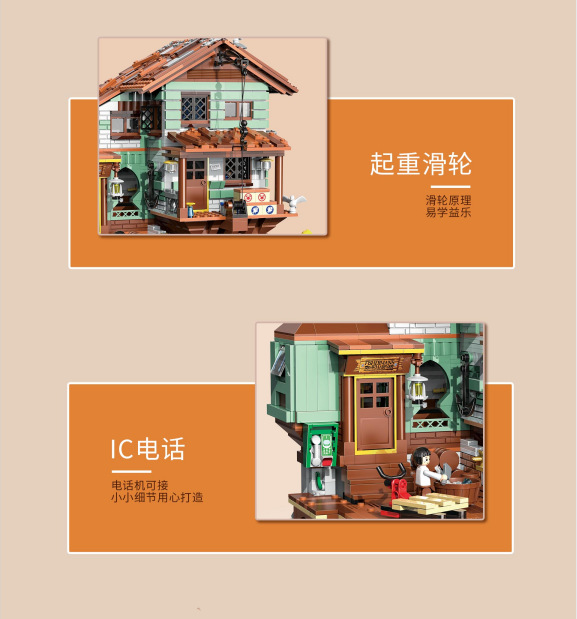Zhe Gao MINI 00421 어부의 부두 어부의 오두막 스트리트 뷰 빌딩 블록 도시 MOC 건물 조립 장난감스토어 가기