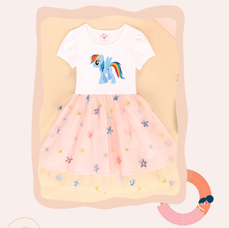 여자 원피스 여름 2023 새로운 아기 짧은 소매 원피스 별이 빛나는 원피스 조랑말 어린이 공주 원피스스토어 가기