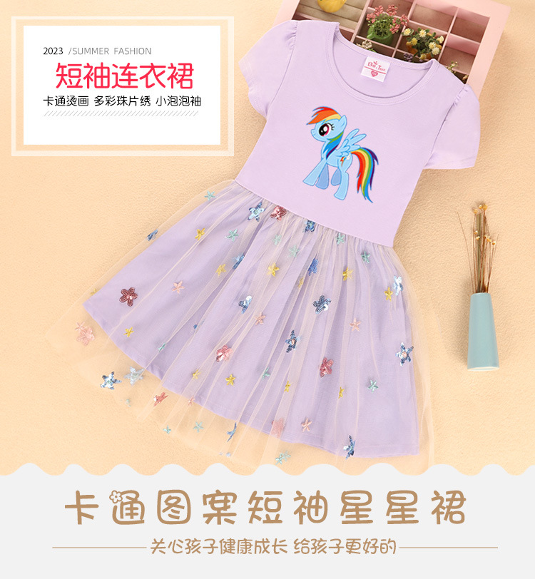 여자 원피스 여름 2023 새로운 아기 짧은 소매 원피스 별이 빛나는 원피스 조랑말 어린이 공주 원피스