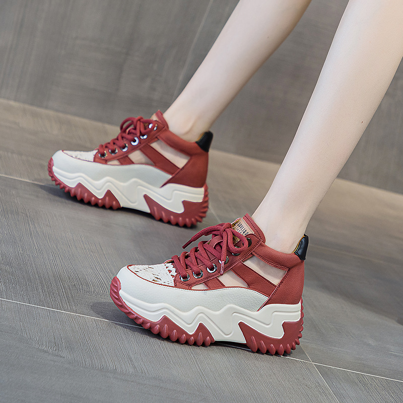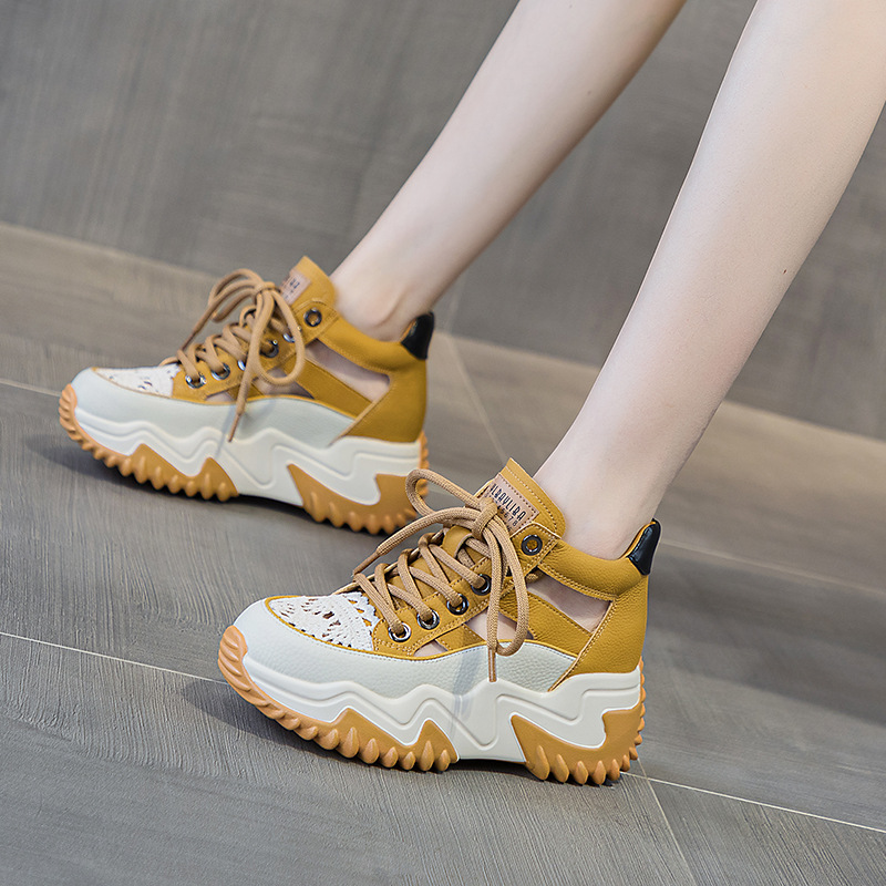 여성을위한 가죽 중공 아빠 신발 여름 2025 새로운 캐주얼 패션 복고풍 경량 내부 높이 증가 신발 두꺼운 밑창 샌들